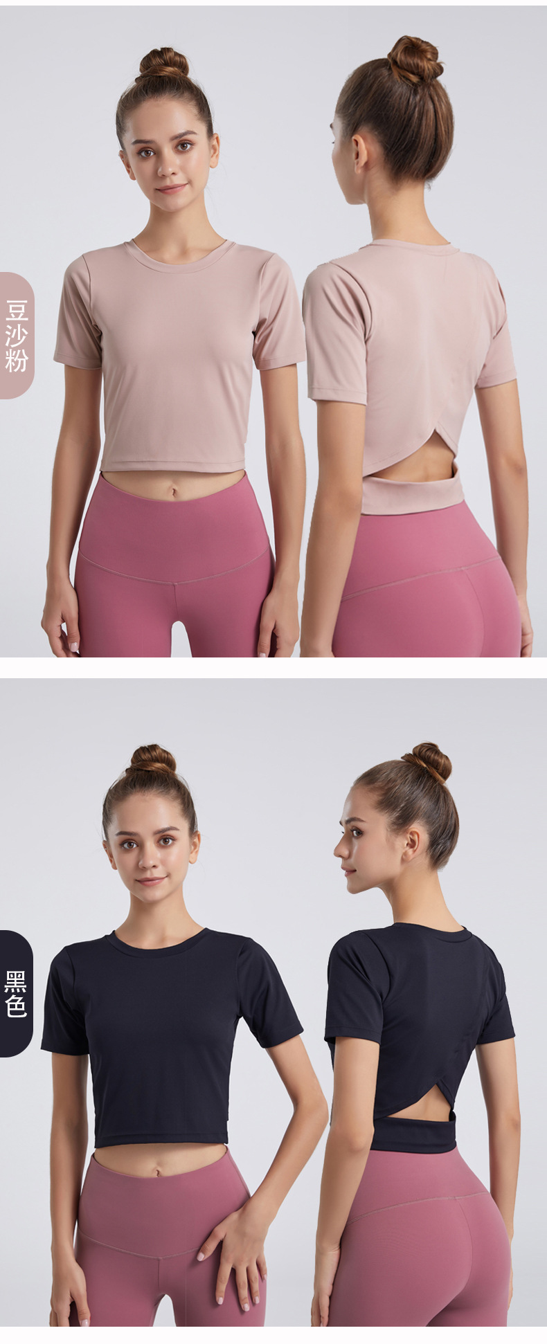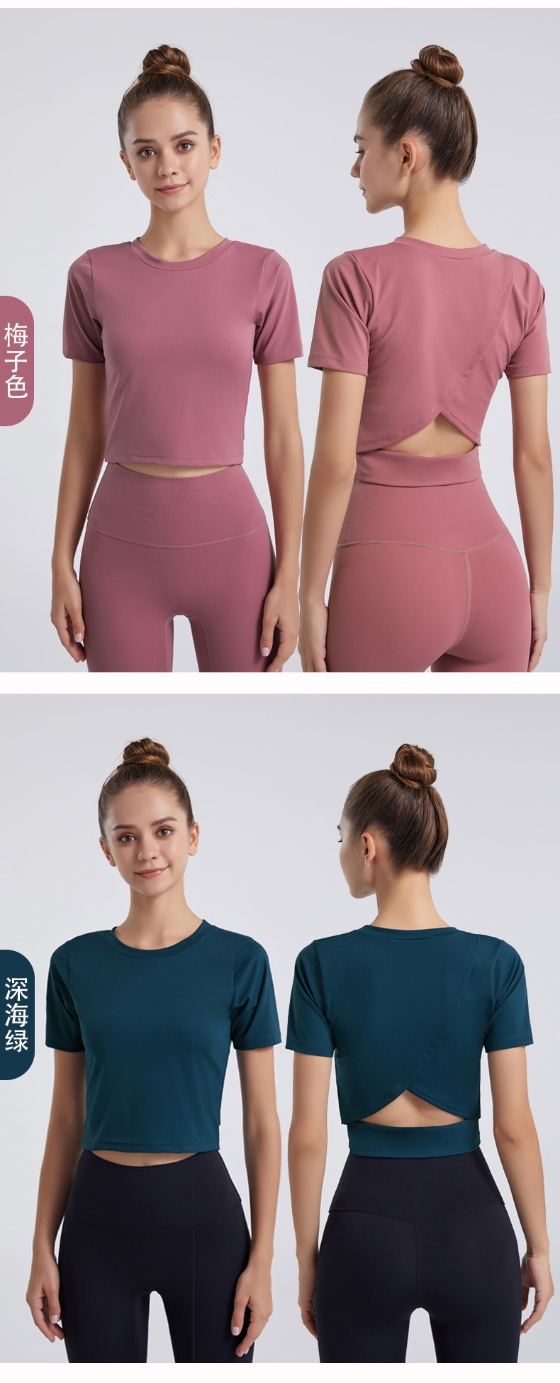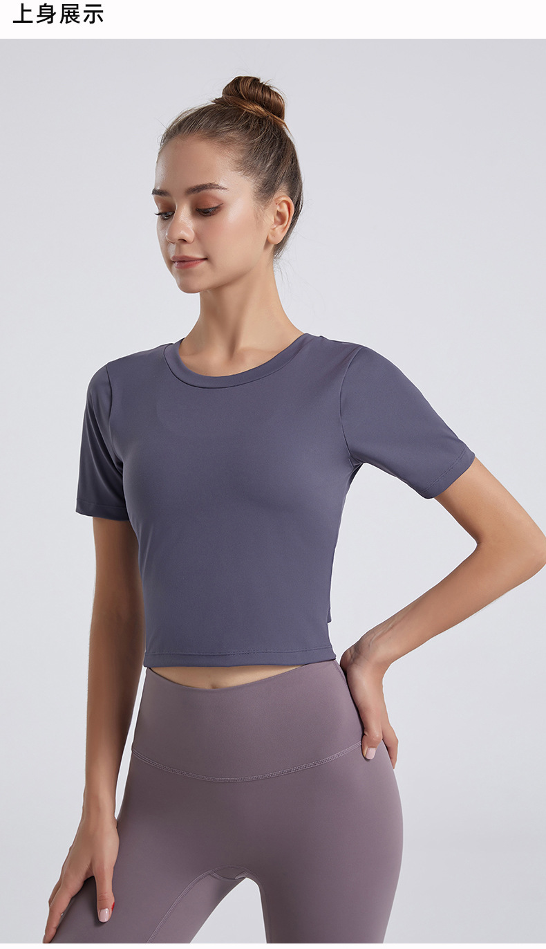 2024 primavera y verano nuevo cuello redondo yoga deportes manga corta Mujer desnudo slim fit ombligo camiseta casual color sólido ropa de entrenamiento