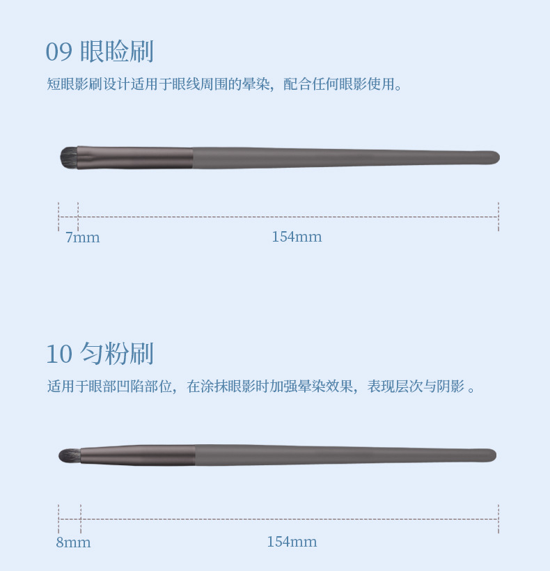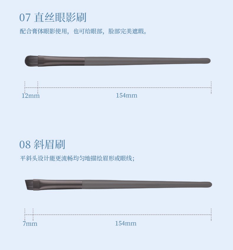 | Categoría del producto | Cepillo de delineador de ojos, cepillo de sombra de ojos, cepillo de polvo disperso, cepillo de cejas, cepillo de rubor, cepillo de brillo / brillo |
