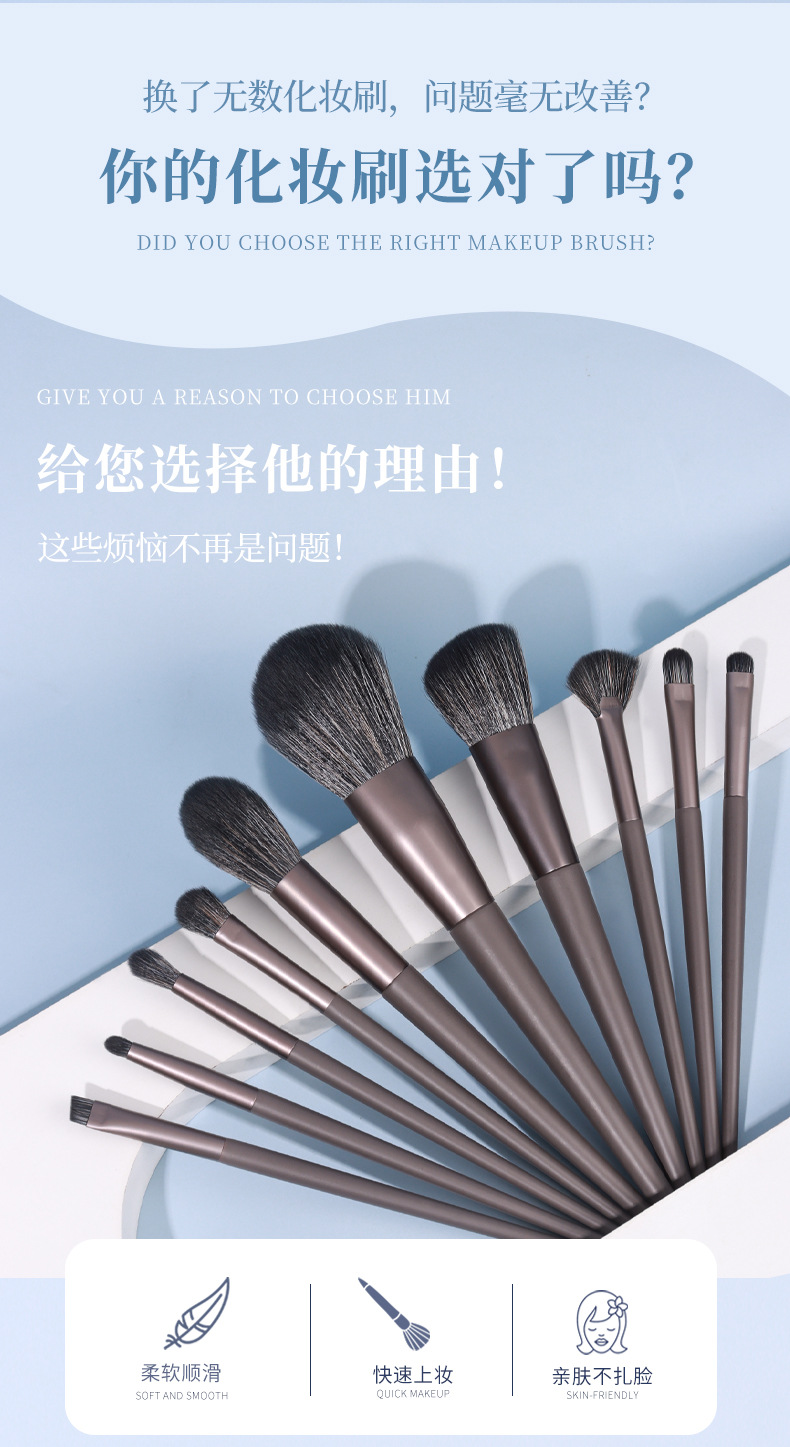 Zhuoerya conjunto de cepillo de maquillaje Cangzhou 10 herramientas de maquillaje conjunto completo de cepillo de sombra de ojos suave en polvo de pintura al por mayor