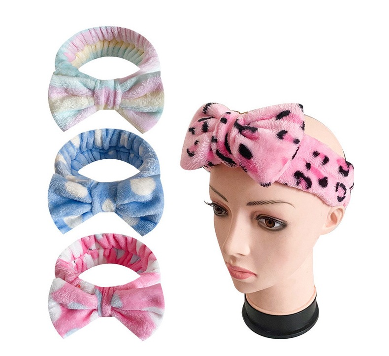 Diadema con lazo de lunares con estampado de leopardo europeo y americano, pañuelo facial SPA, diadema elástica transfronteriza, diadema de borde ancho a rayas