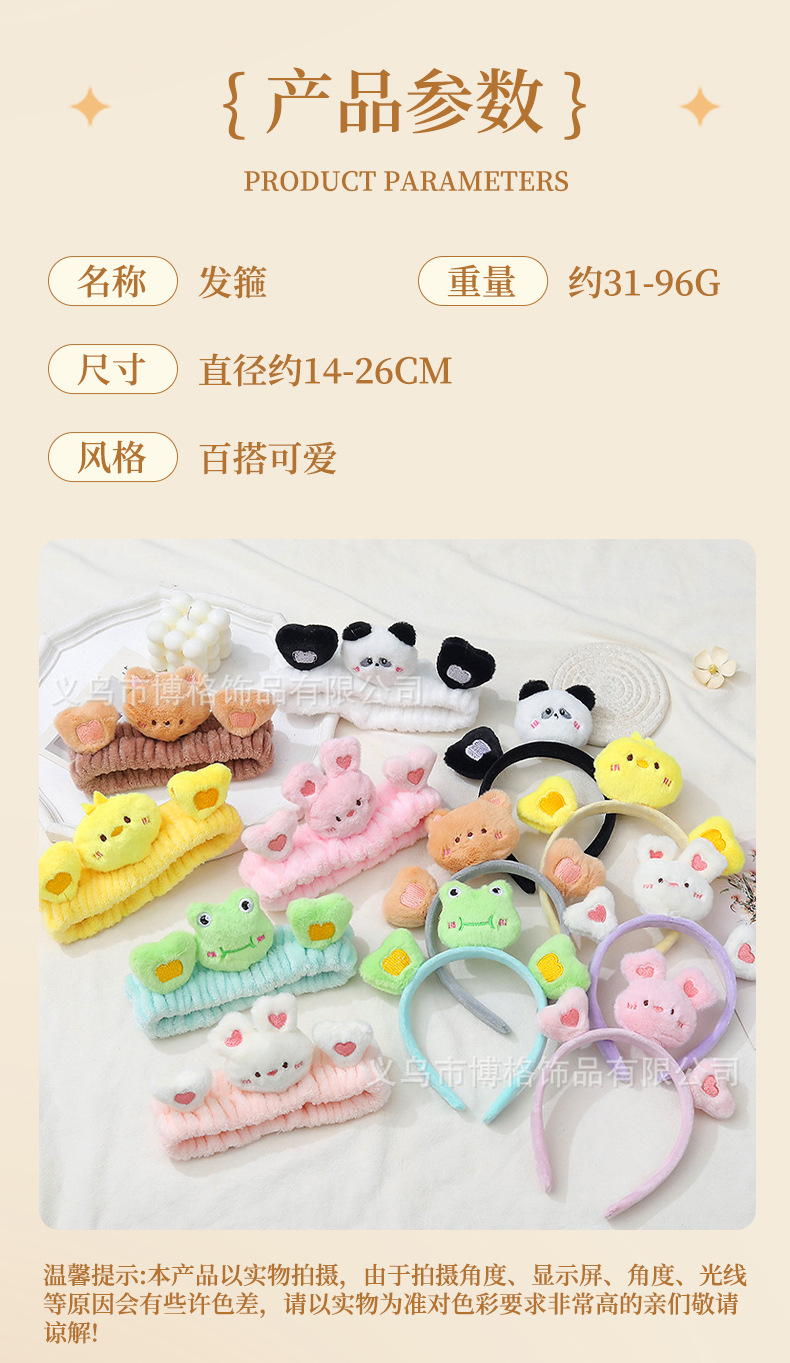 2023 celebridad estilo de dibujos animados lindo conejo oso Rana pato cara lavado maquillaje pelo banda diadema