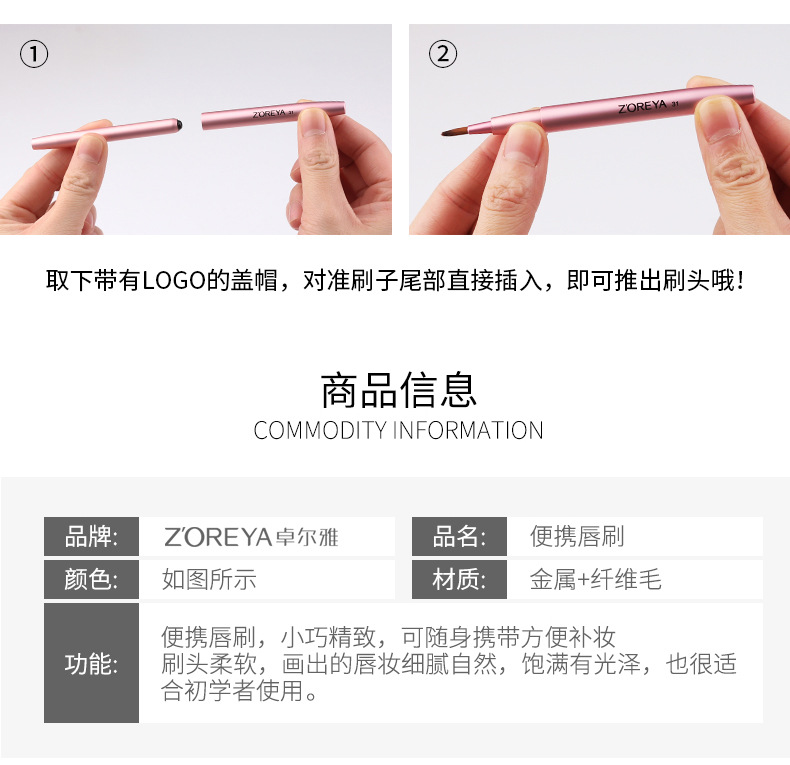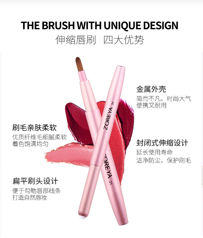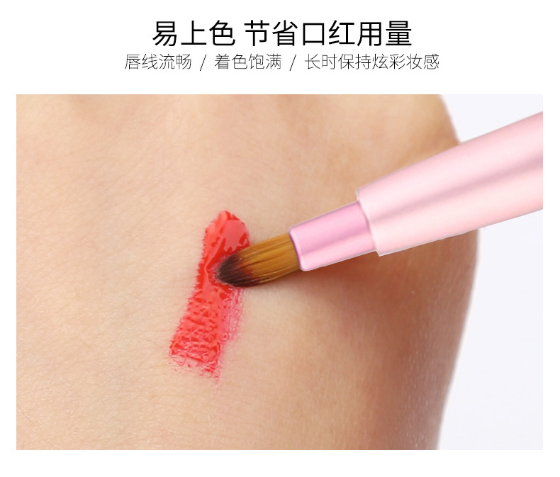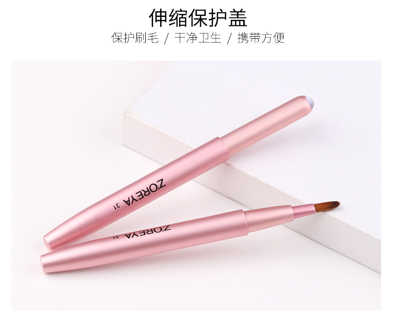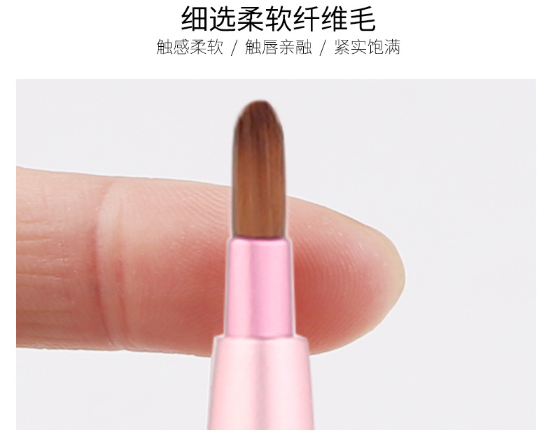 Zoelya-brocha de maquillaje con cerdas de fibra, cepillo de labios retráctil portátil, herramienta de maquillaje, tubo de polvo con cepillo de lápiz labial rosa de una sola cabeza.