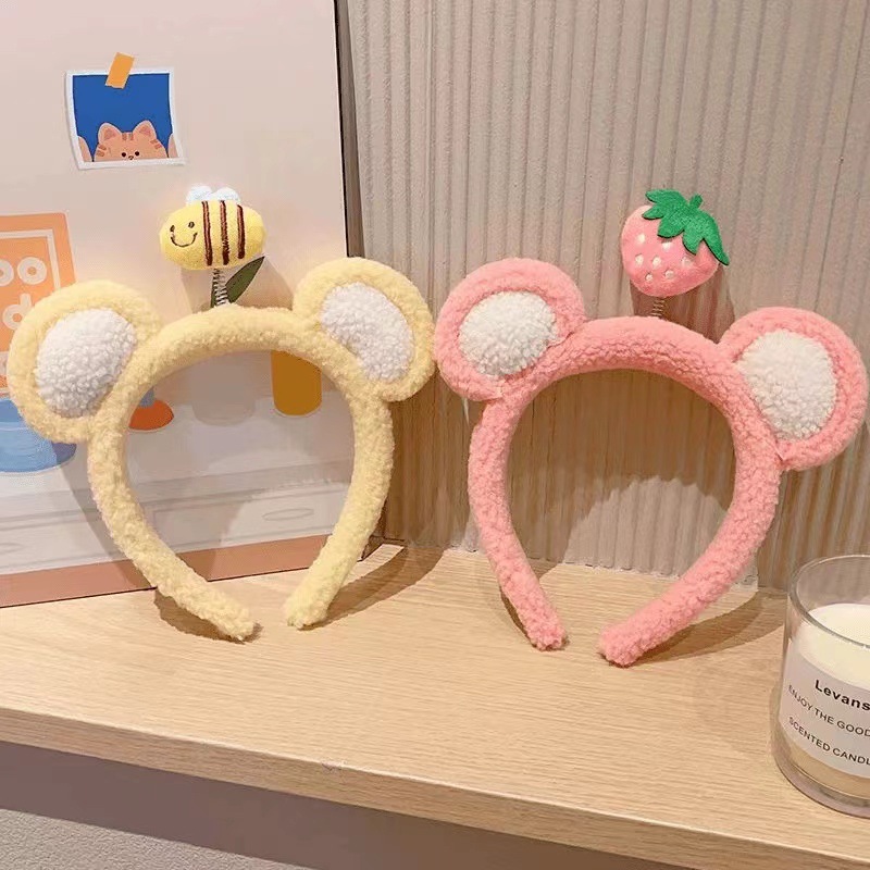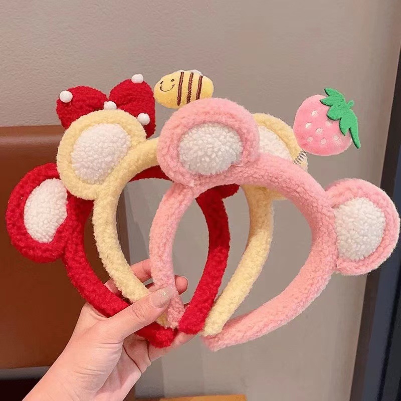 2024 otoño y invierno nuevo dulce tierna chica lavado facial maquillaje banda de pelo peluche correa de cabello fábrica al por mayor