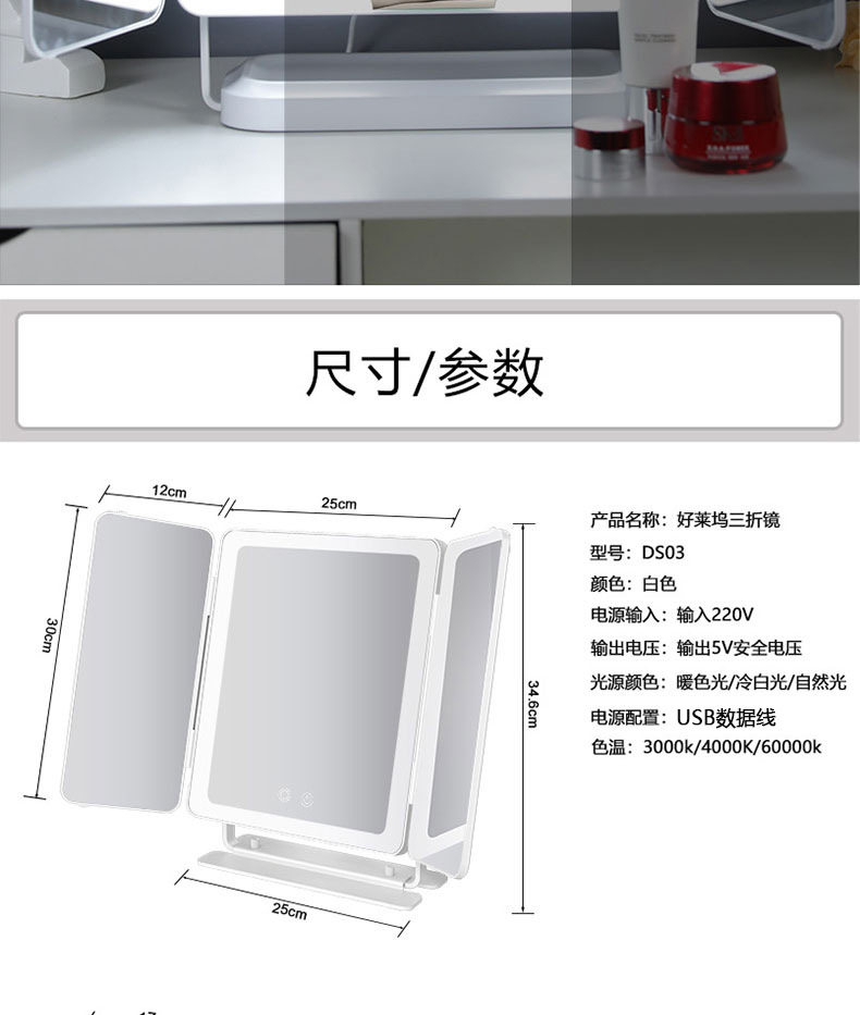 ![[Modelo enchufable] Fuente de luz de tres colores con espejo triple grande blanco](https://cbu01.alicdn.com/img/ibank/O1CN01AnC4Ol1KYCOeVMmre_!!1822561175-0-cib.jpg)