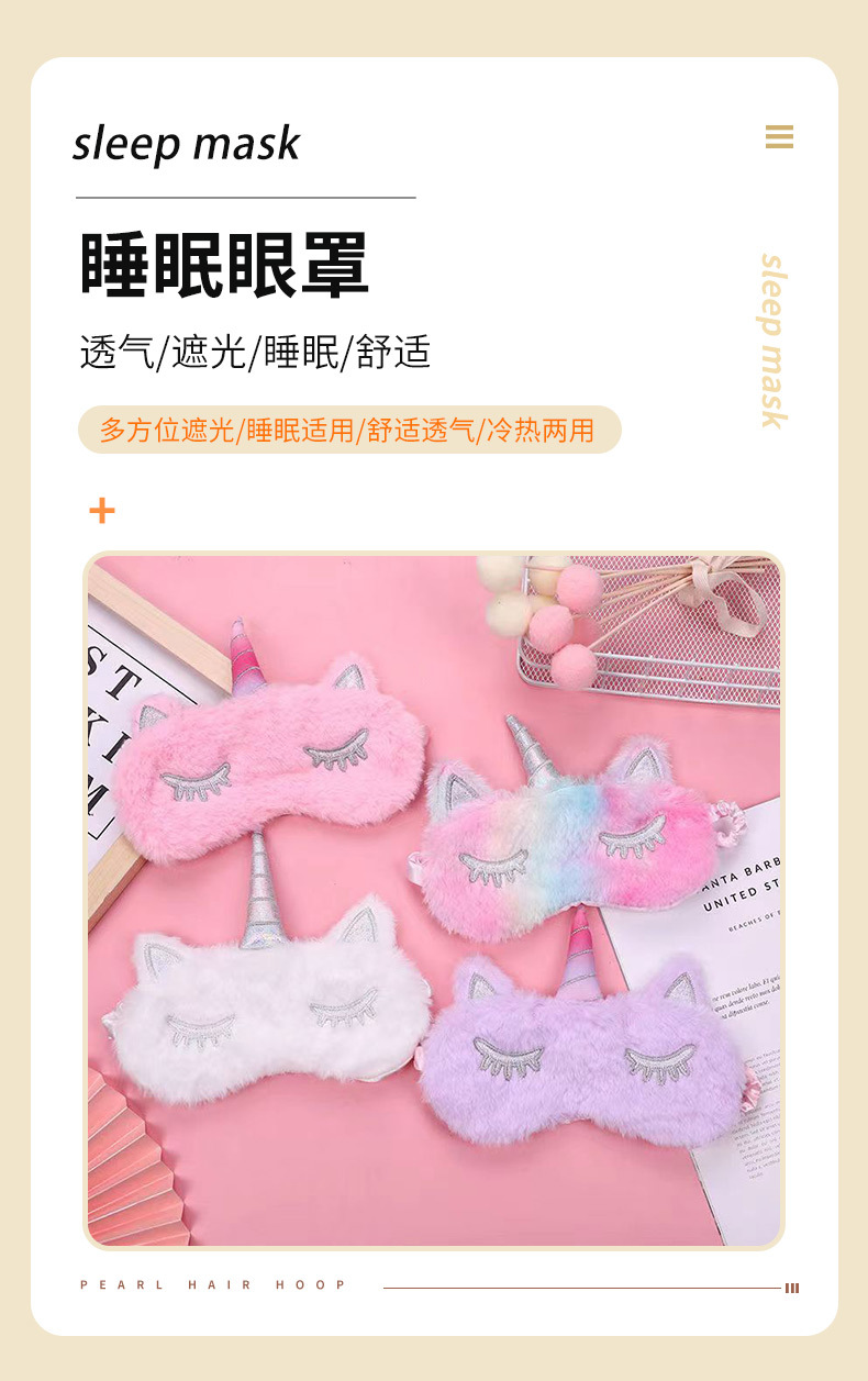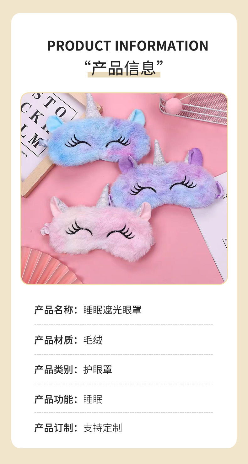 2023 nuevo unicornio lindo chica felpa sombreado máscara de ojos invierno dibujos animados niños estudiante sueño chica especial