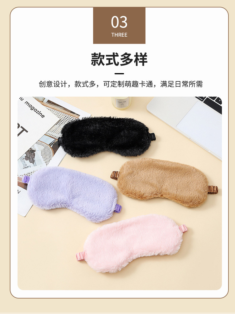 Suministro de máscaras de ojos de peluche para dormir lindas máscaras de ojos de peluche simple sombreante almuerzo para dormir máscaras de ojos al por mayor