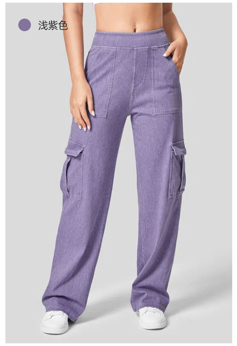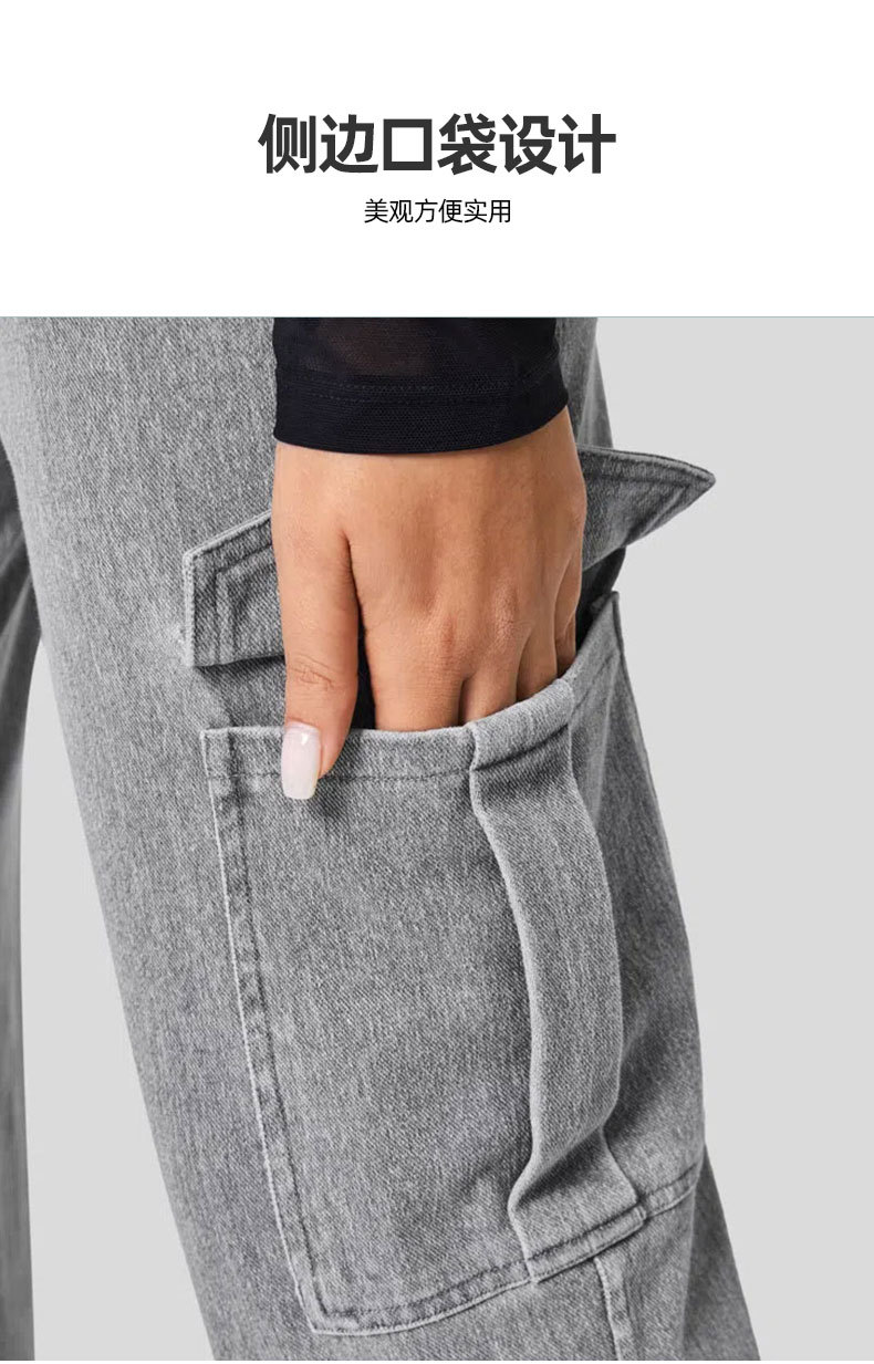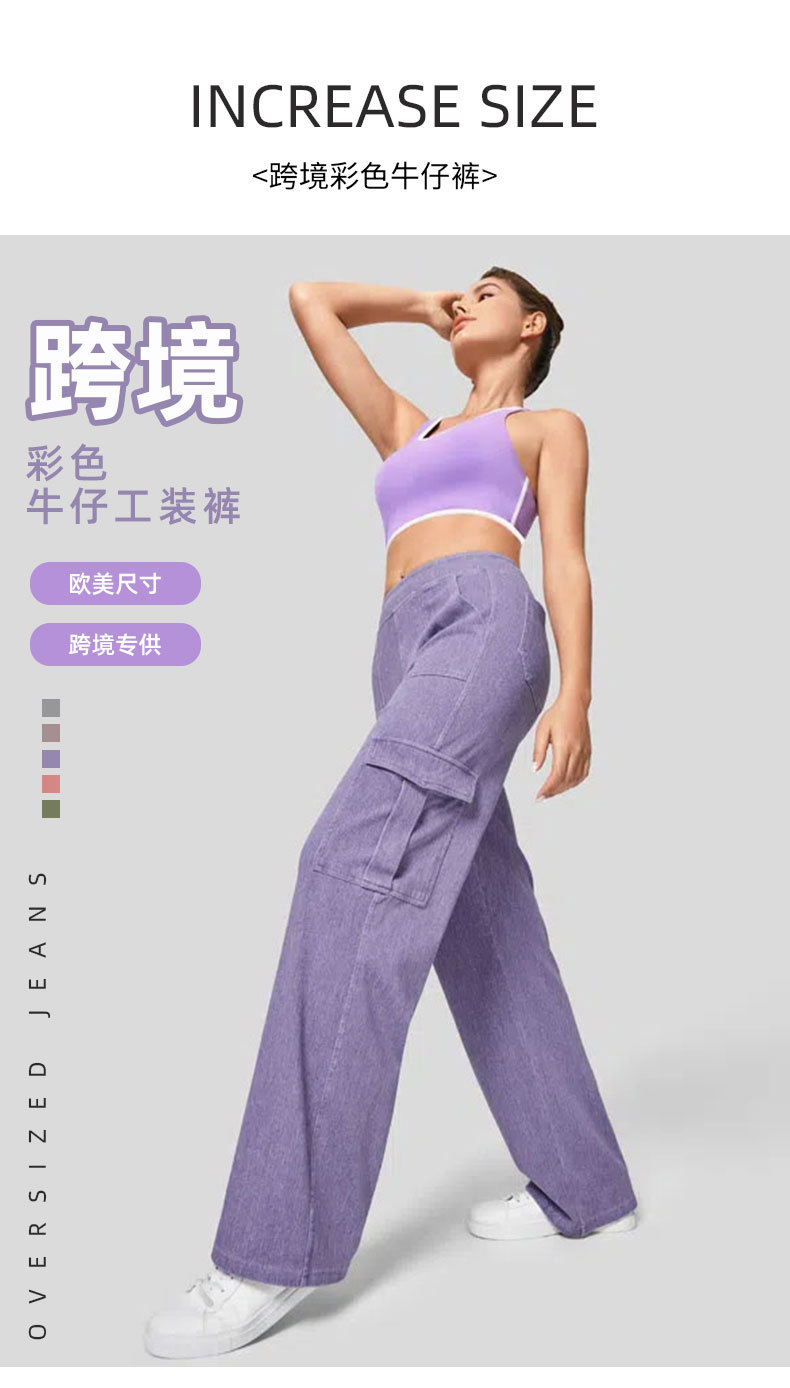 Europa y los Estados Unidos transfronterizos nuevos pantalones denim de color grande para mujeres para aumentar el peso de los bolsillos de los pantalones de trabajo deportivos casuales