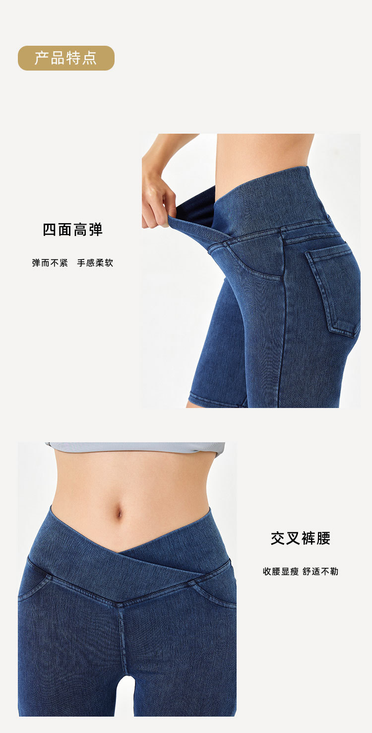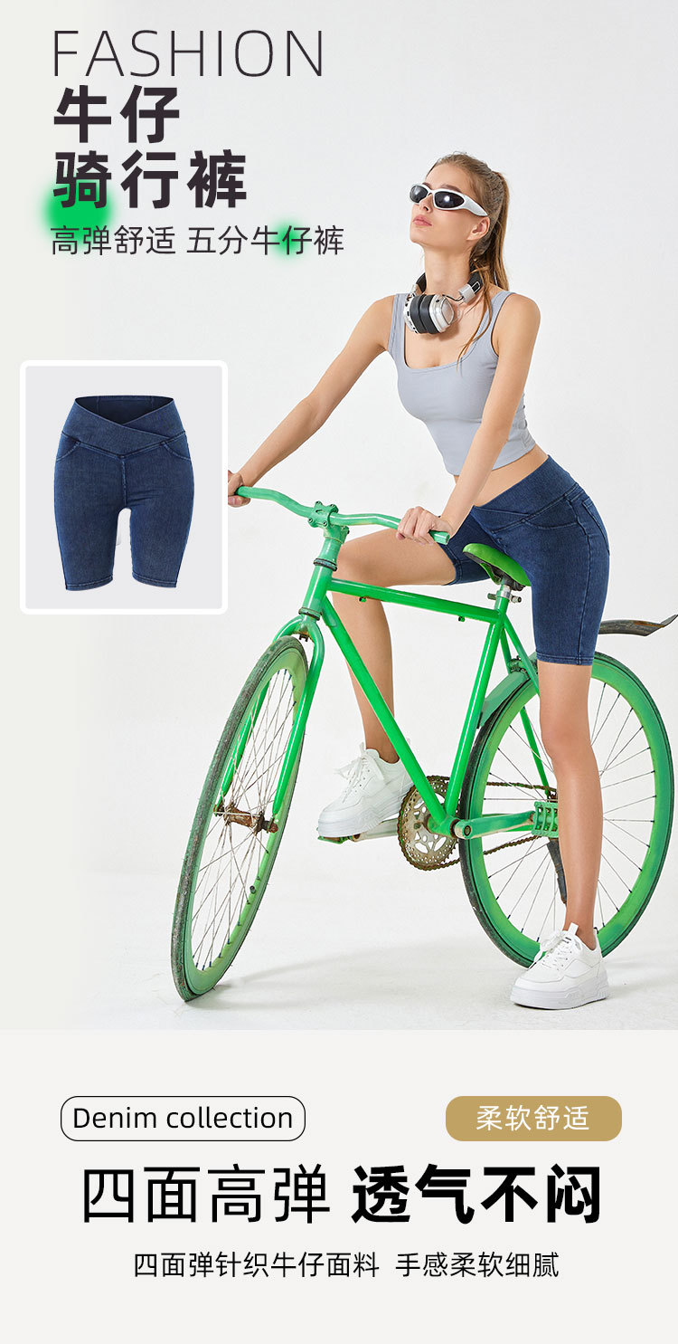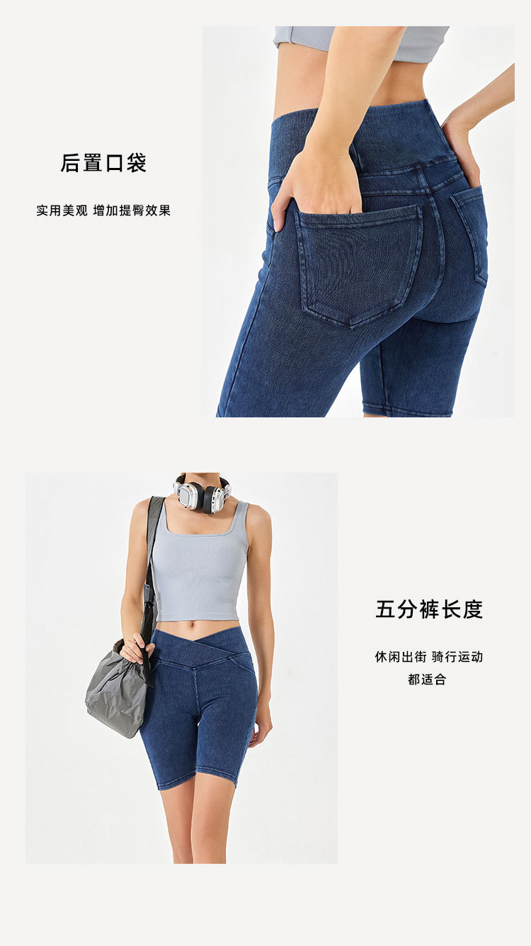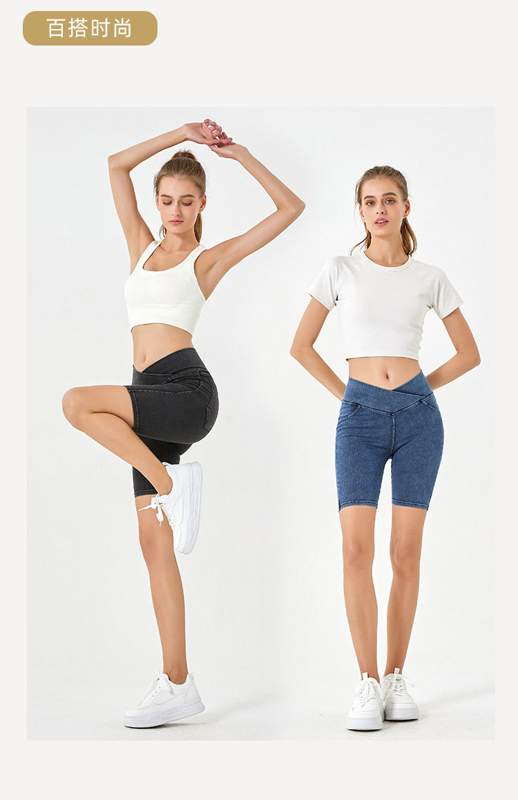 2024 nuevos pantalones cortos de mezclilla de cintura alta cruzada para mujer, pantalones de ciclismo de cinco puntos deportivos delgados y de alta elasticidad
