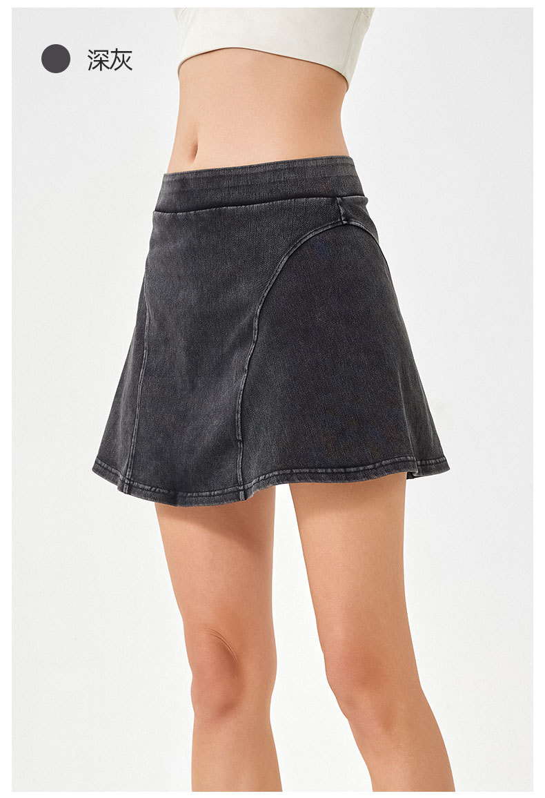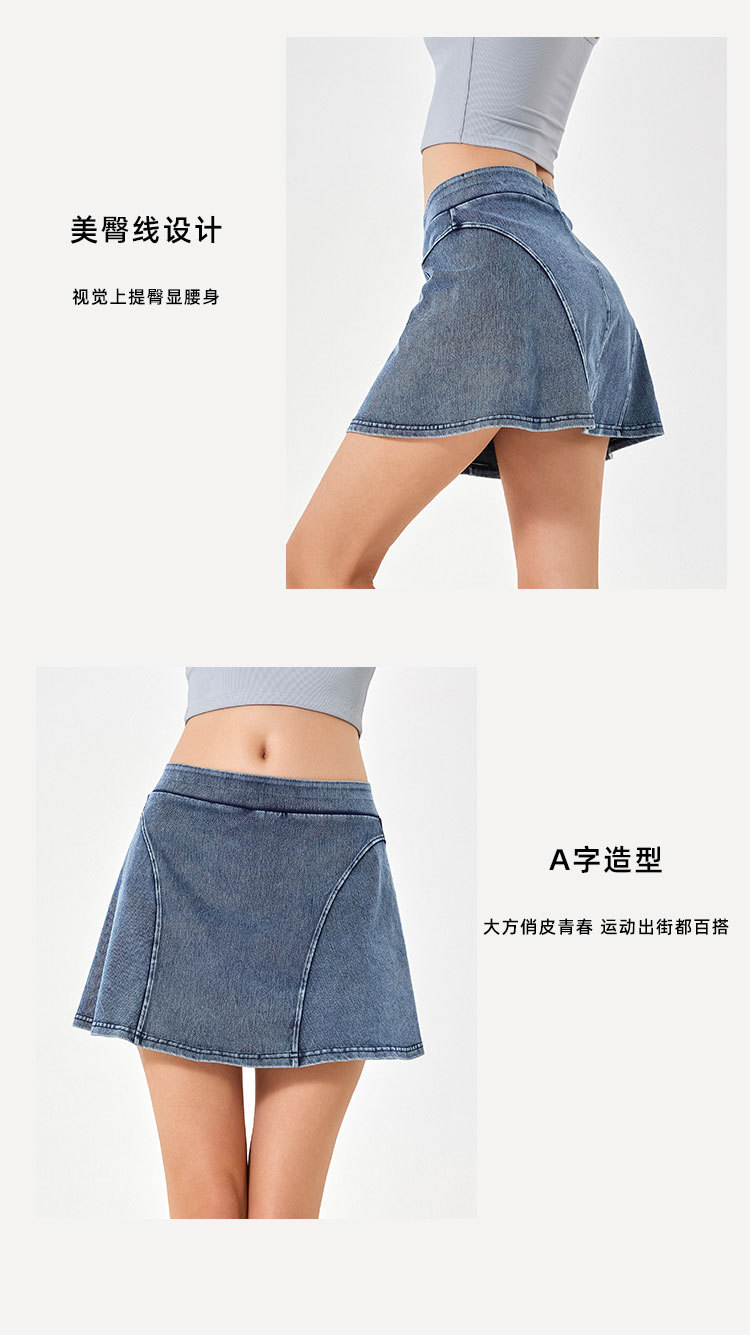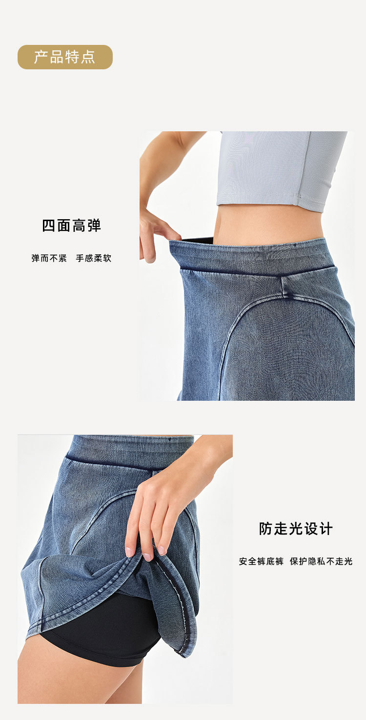 Otoño y invierno nuevo alto elástico falso de dos piezas denim falda de yoga para mujeres cintura alta adelgazamiento de caderas deportivas pantalones cortos de fitness