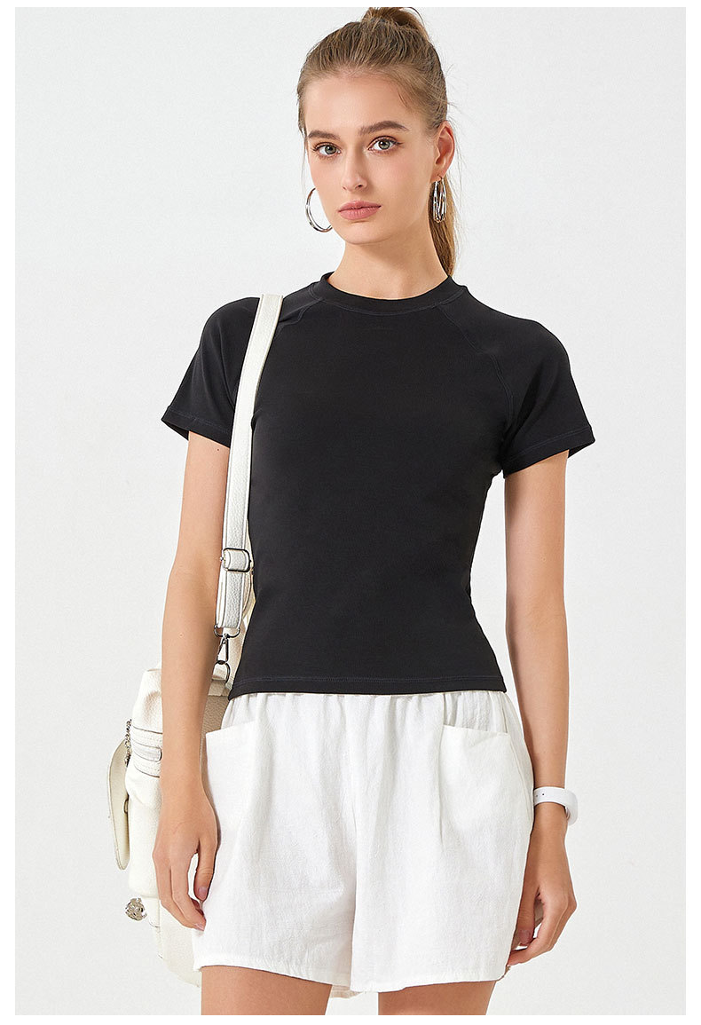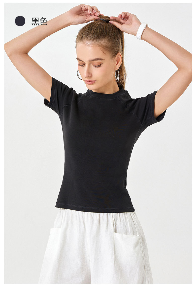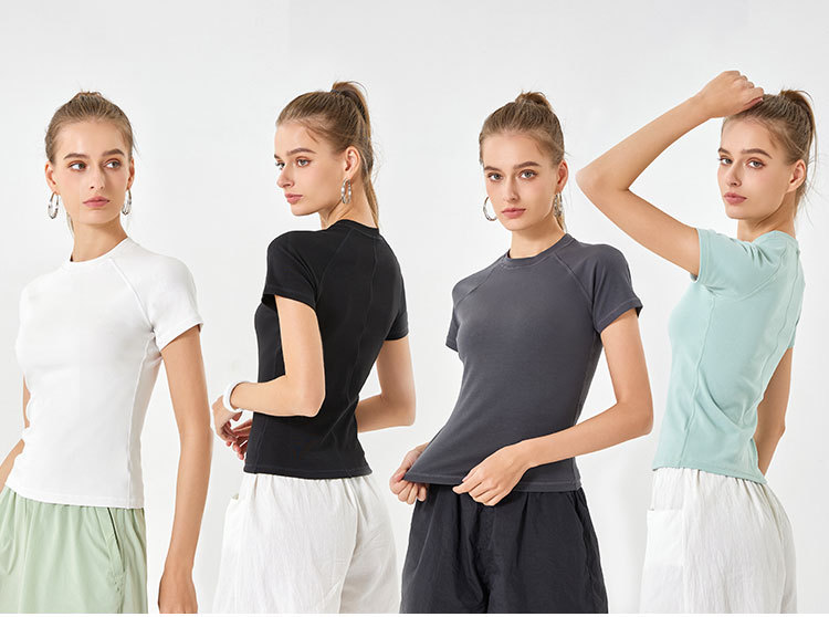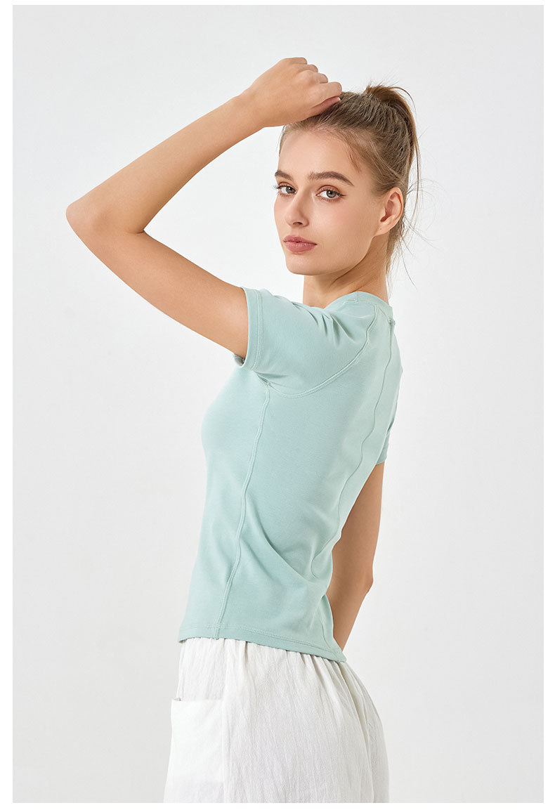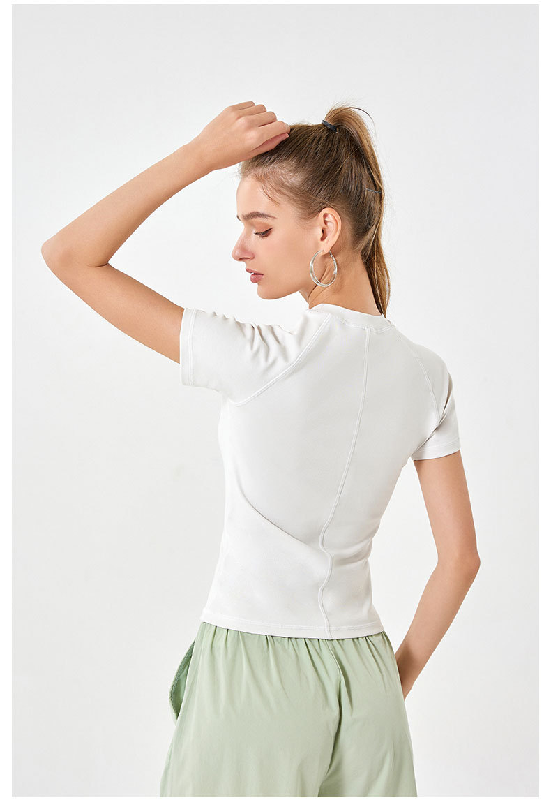 Otoño y invierno nuevo algodón hialurónico largo deportivo de mangas cortas de cuello redondo de mujer delgado apretado ventilado y alta chaqueta de yoga elástica