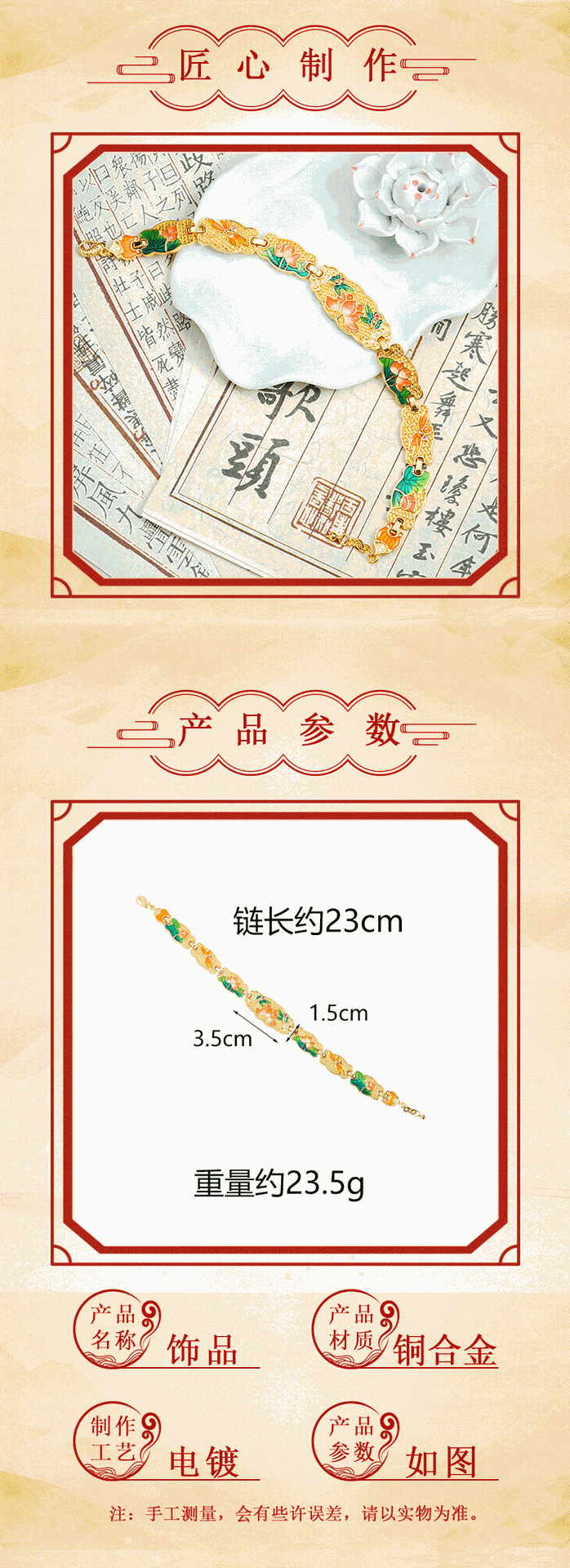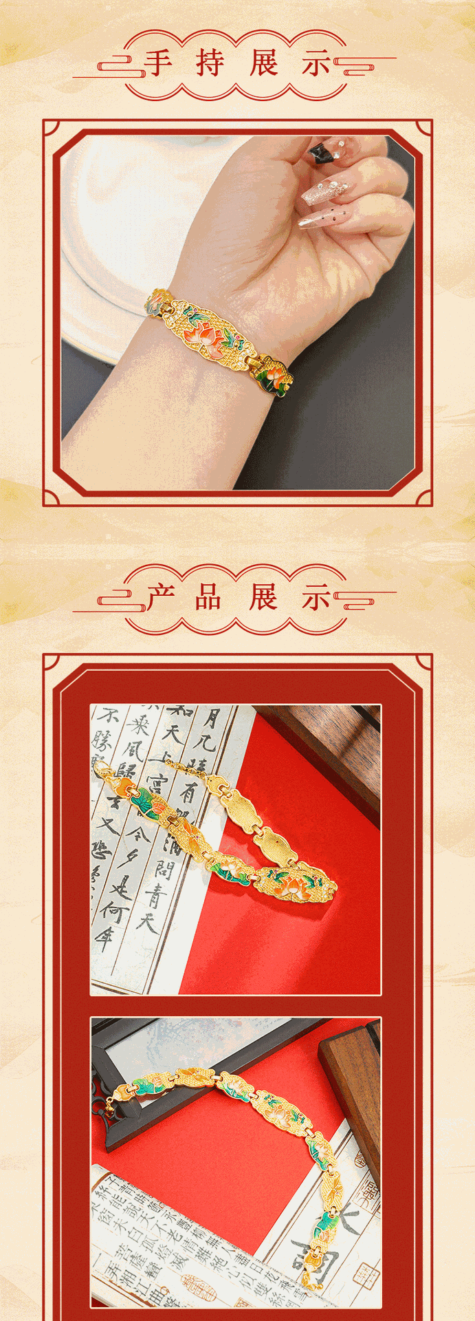 Nueva pulsera de oro de arena antigua china, brazalete de loto tridimensional de aceite de goteo de esmalte de marea nacional, joyería retro que no se desvanece durante mucho tiempo