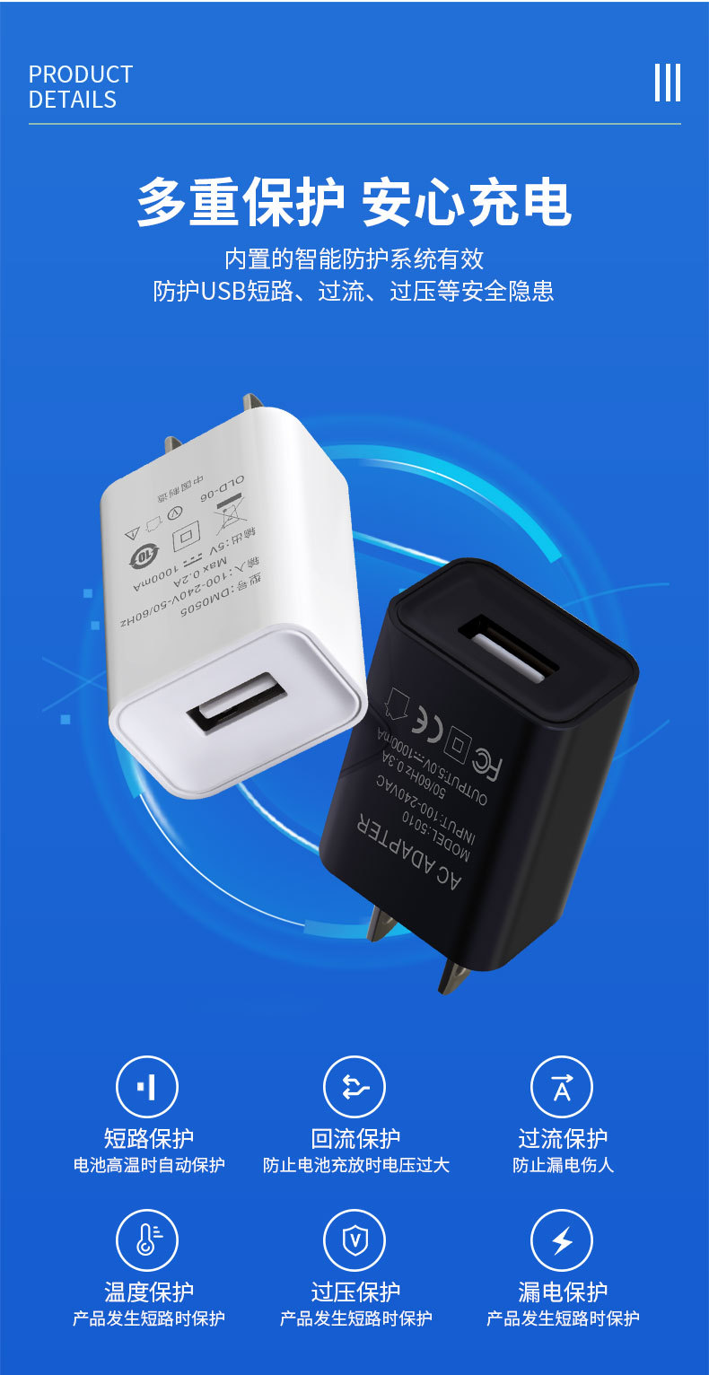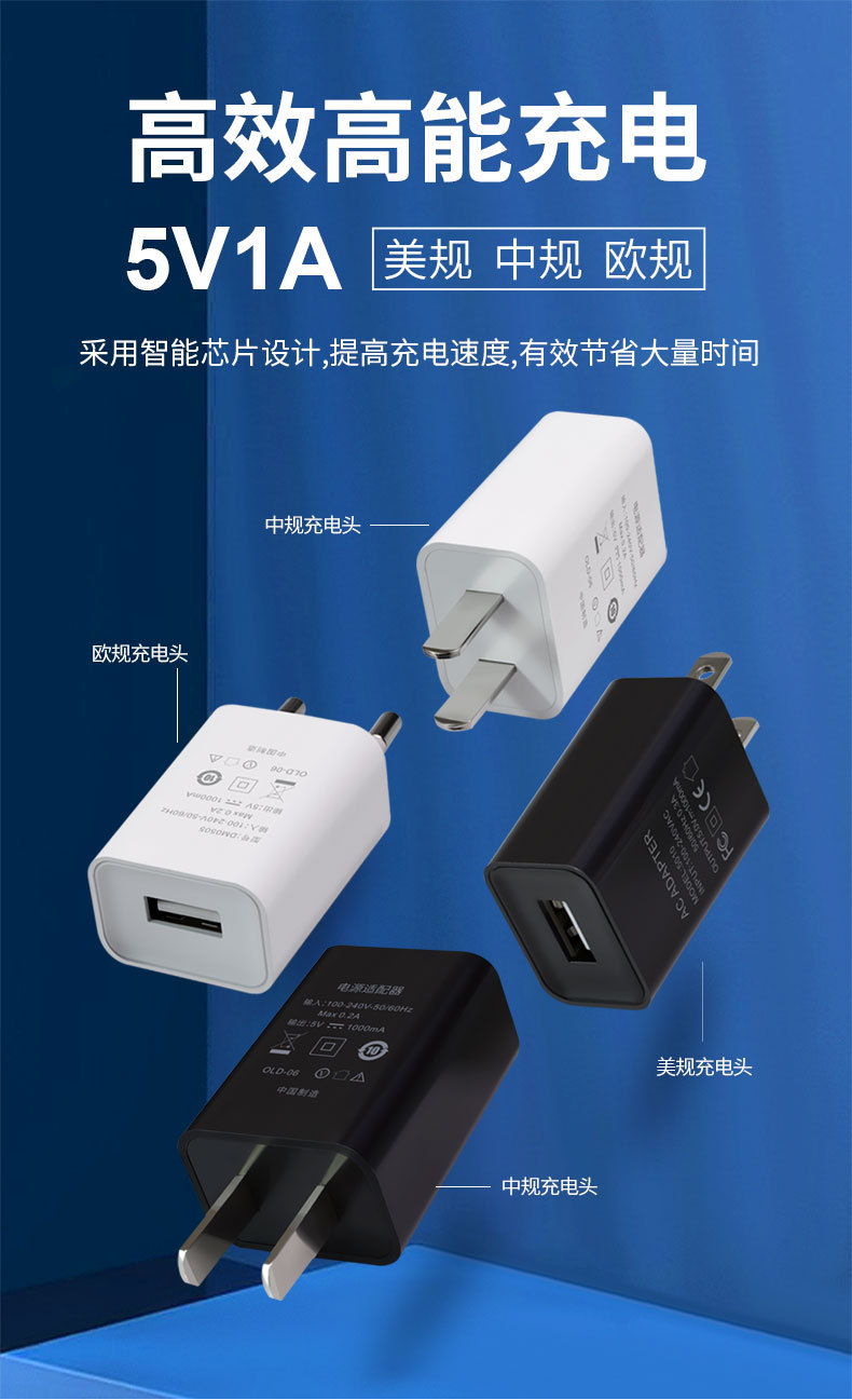 5V1A Cargador estándar estadounidense Cabeza de carga del teléfono móvil USB Adecuado para adaptador de corriente de teléfono móvil Android Personalización de fábrica