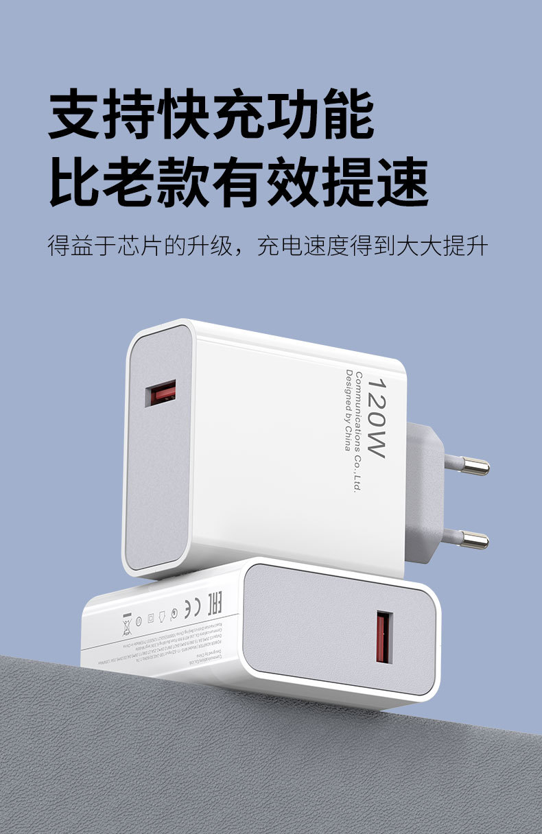 Cabeza de carga de teléfono móvil USB estándar europeo de 120W para teléfono móvil Android adaptador de corriente universal original al por mayor