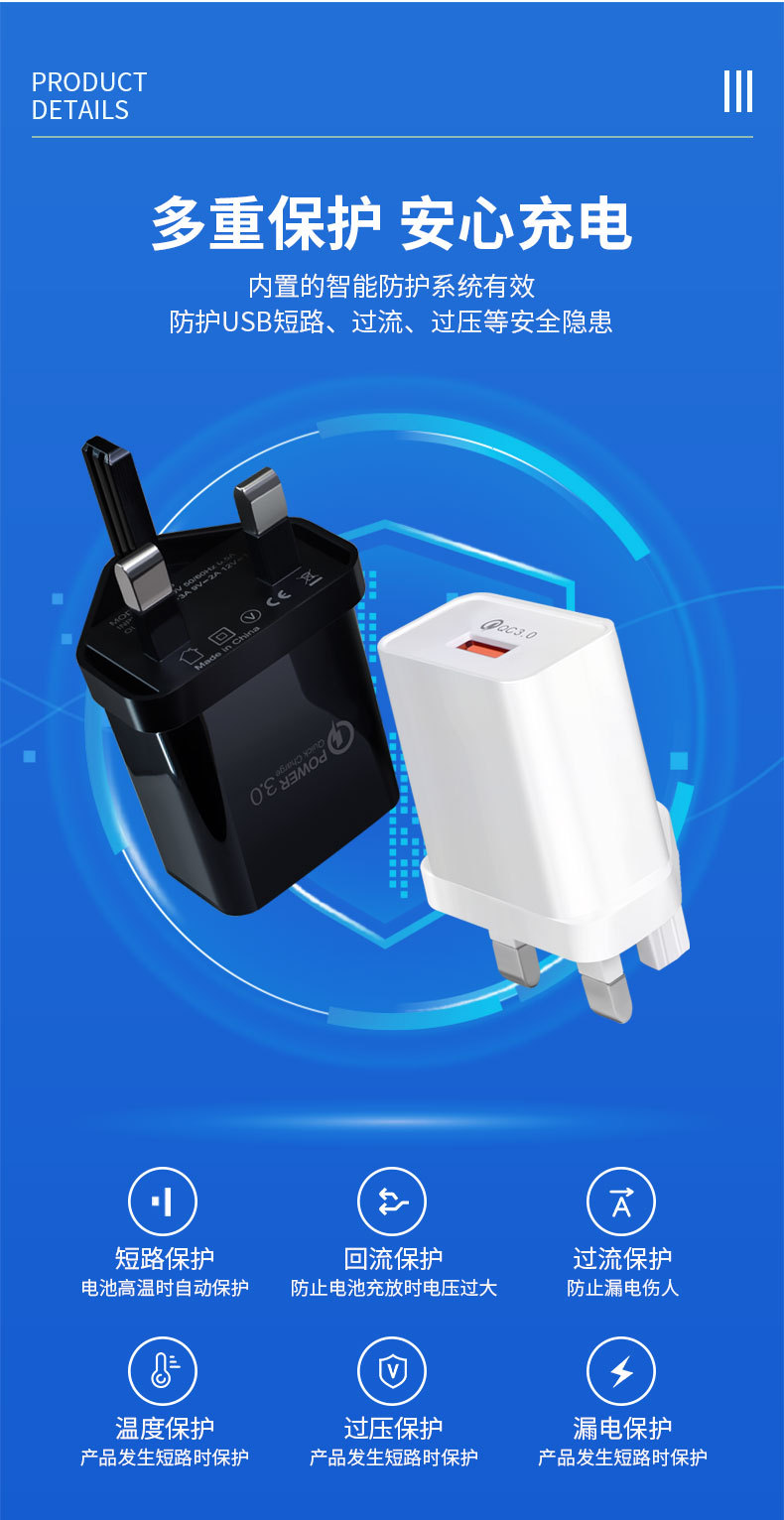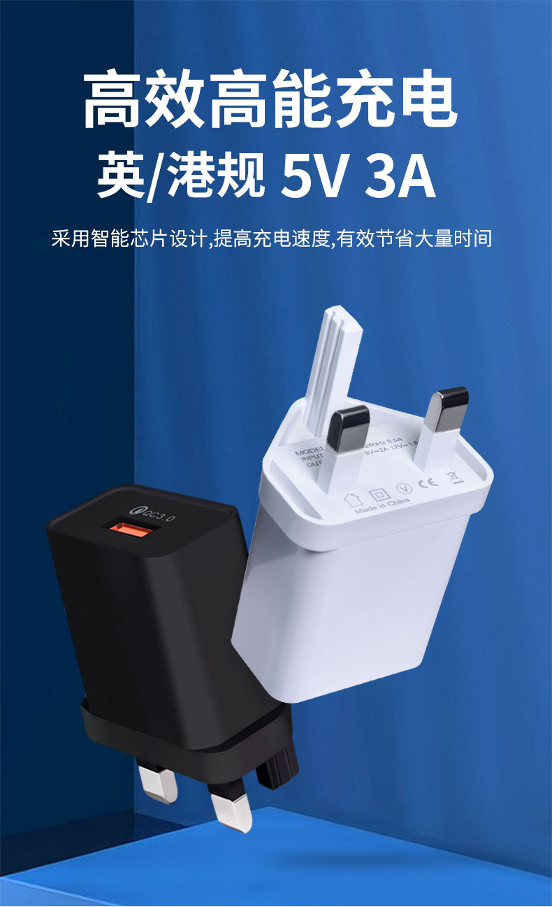 5V3A trípode estándar británico único USB adaptador de corriente multifunción traje de teléfono móvil aplicable tableta qc3.0 cabeza de carga