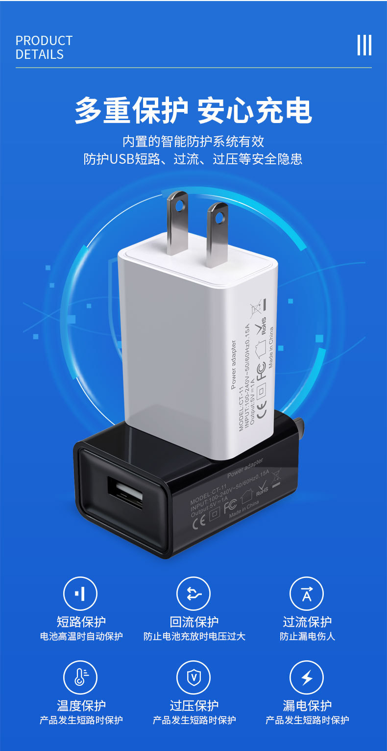 5v1a cargador de teléfono móvil estándar americano adaptador de corriente USB para Android Apple cabeza de carga certificación FCC
