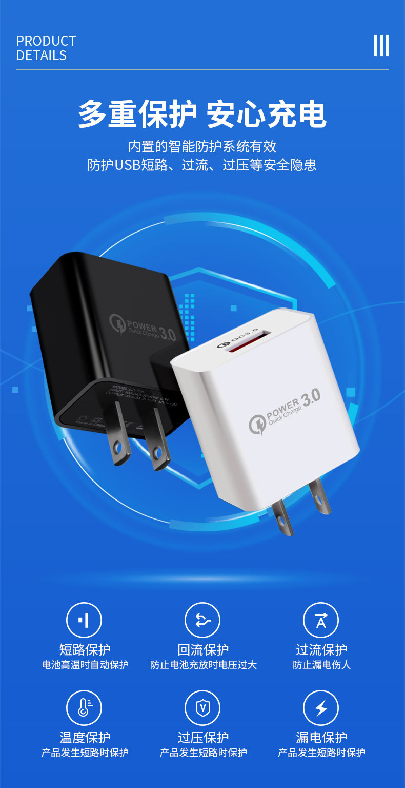 | Modelos aplicables | Qc3.0 US negro,Qc3.0 estándar estadounidense blanco,Qc3.0 estándar europeo negro,Qc3.0 estándar europeo blanco,20W estándar americano negro,20W estándar estadounidense blanco,20W estándar europeo negro,20W estándar europeo blanco,Qc3.0 estándar medio negro,Qc3.0 estándar medio blanco |
