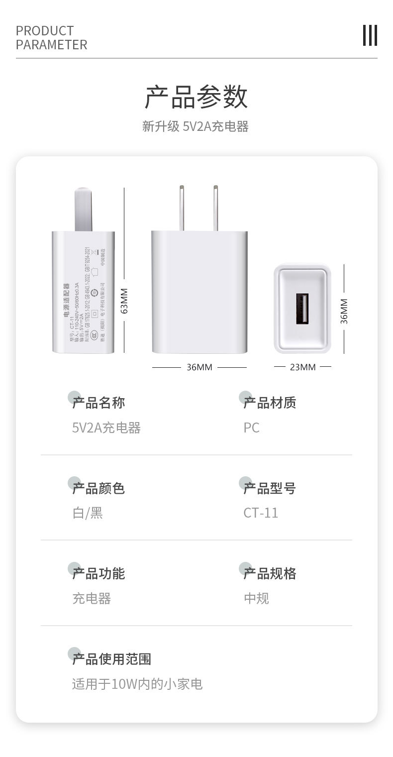 3C cabeza de carga 5V2A adaptador de corriente universal 5V1A enchufe USB cabeza de carga rápida cargador de teléfono móvil al por mayor
