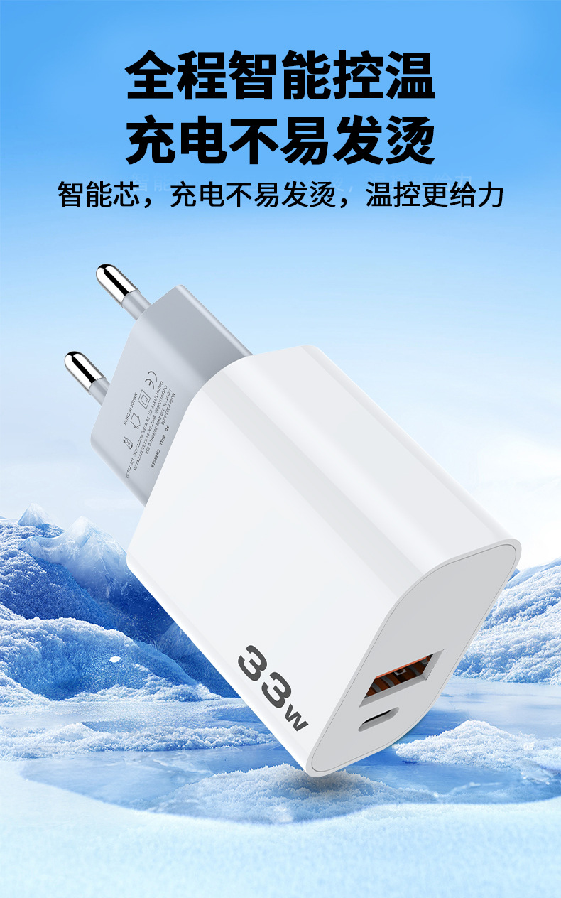 Pd33w cargador europeo cargador rápido certificado CE cabezal de carga para teléfono móvil adecuado para Android Apple 30w paquete de cabezal de carga rápida