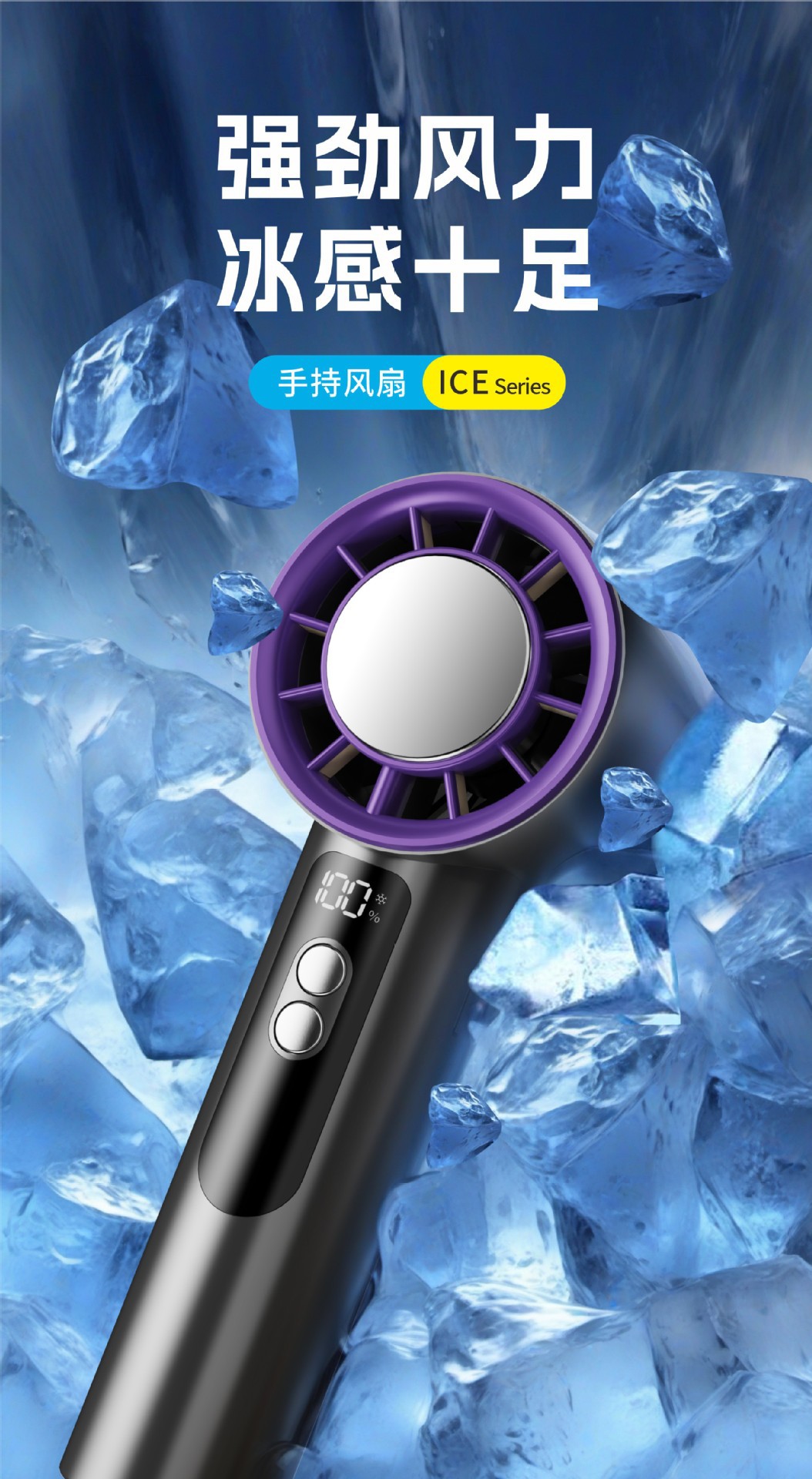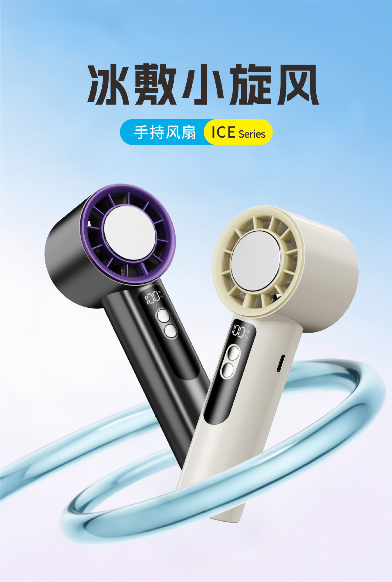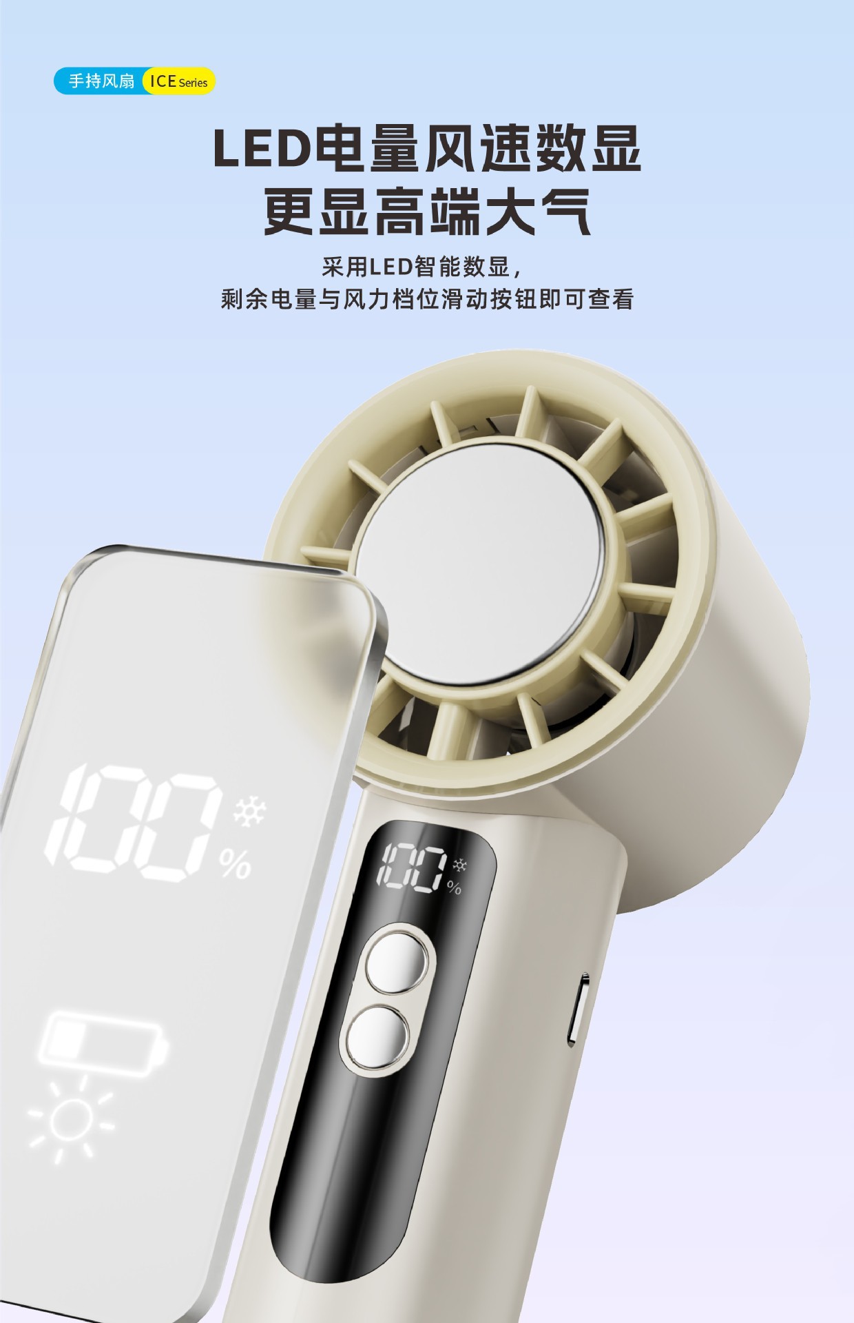 Ventilador de refrigeración de molde privado, refrigeración de turbina de alta velocidad, ventilador pequeño con compresa de hielo, ventilador de alta potencia con pantalla digital USB portátil para exteriores