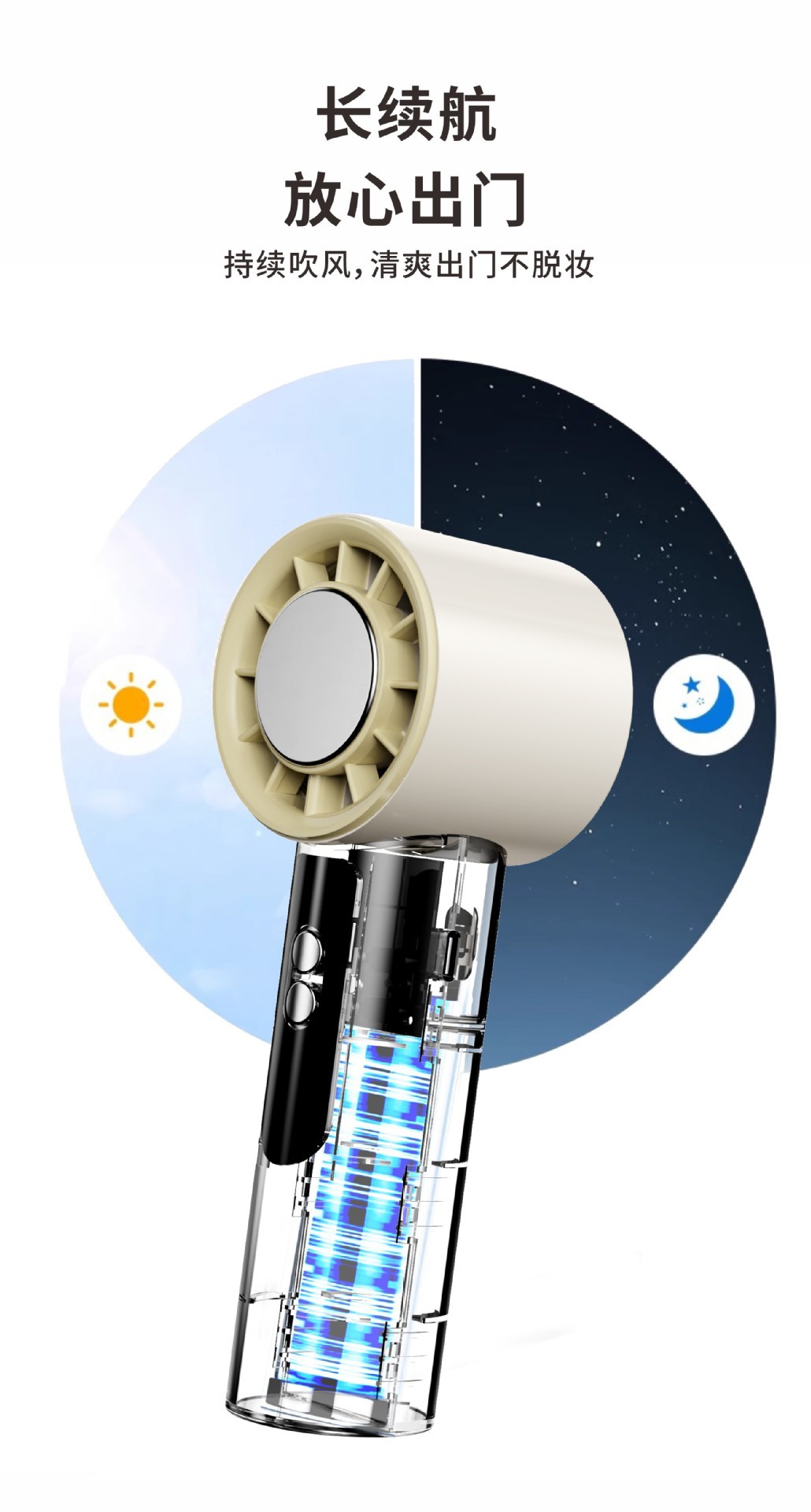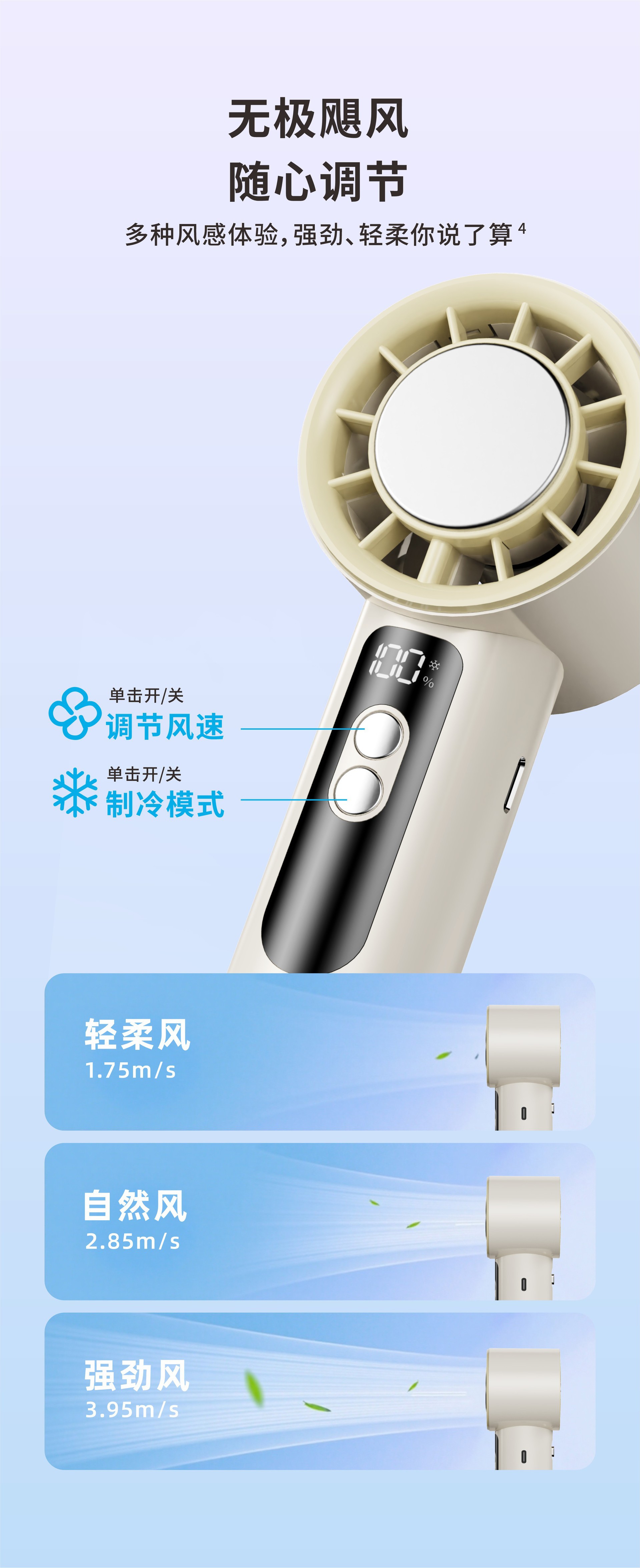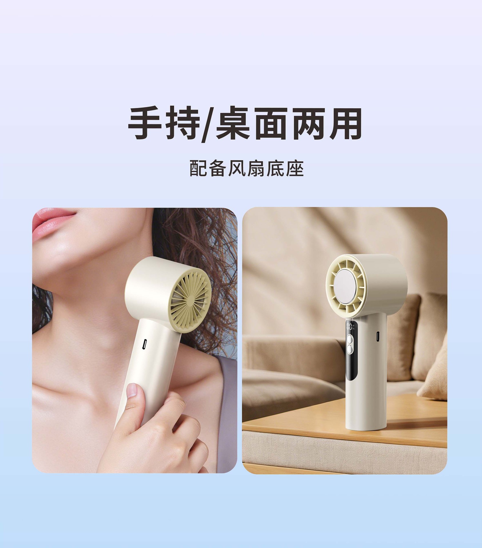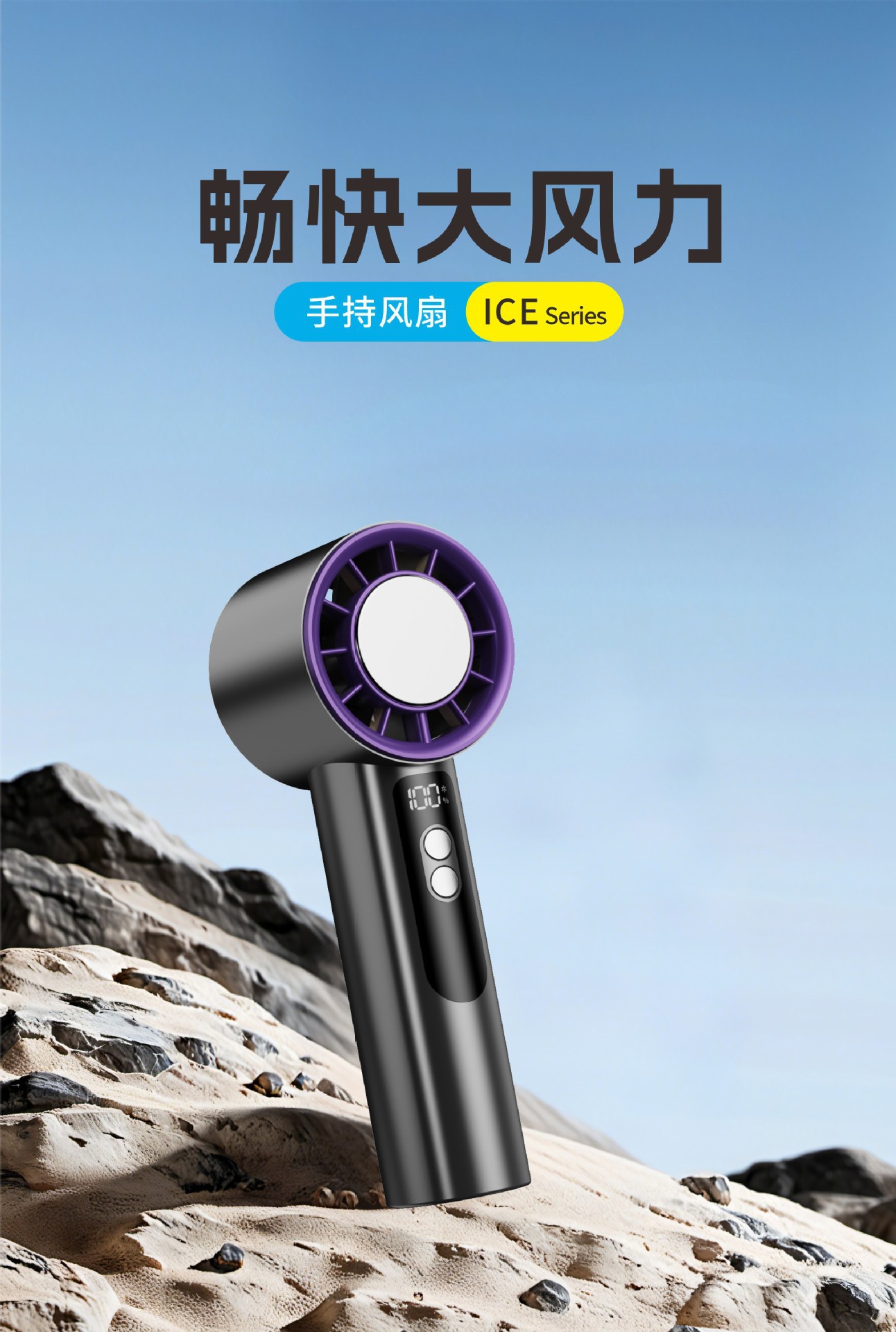 Ventilador de refrigeración de molde privado, refrigeración de turbina de alta velocidad, ventilador pequeño con compresa de hielo, ventilador de alta potencia con pantalla digital USB portátil para exteriores