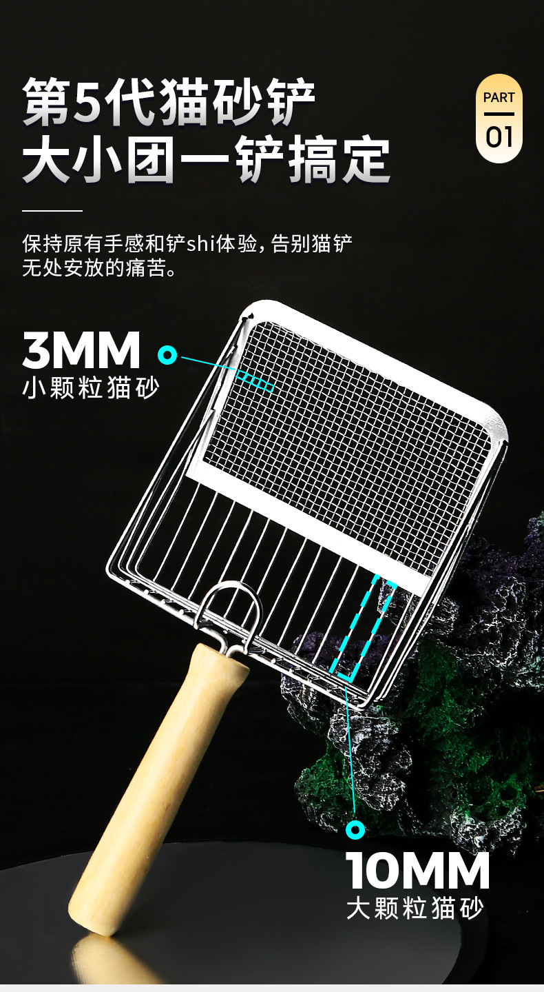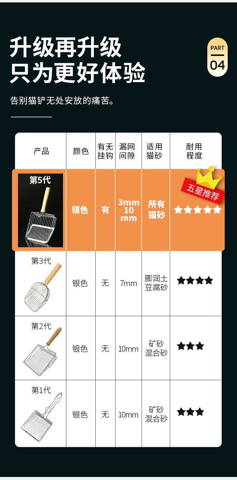 Palas de arena para gatos de metal, agujeros grandes y delgados, palas de mierda para gatos, pala de mierda de arena para gatos de sexta generación, productos de limpieza no de acero inoxidable
