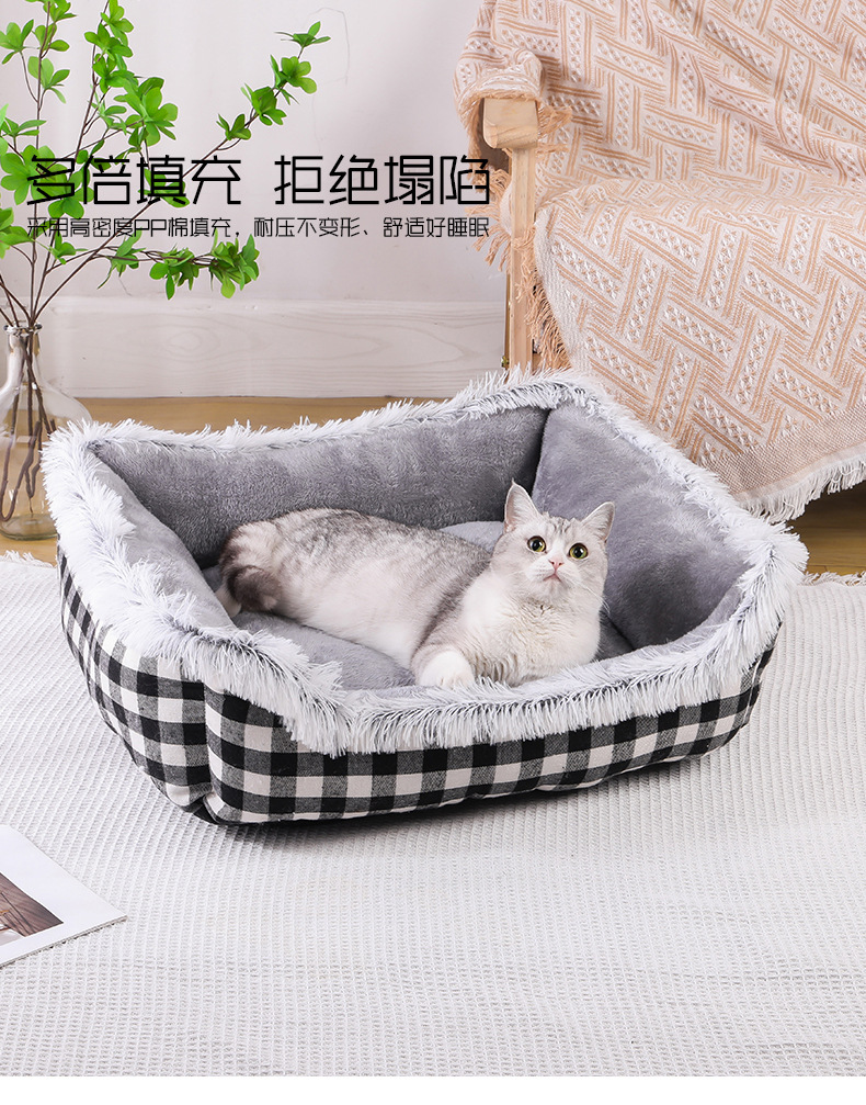 Rosas cuadradas de franela para mascotas en la parte inferior de la camada para gatos antideslizante, proceso de impresión y teñido en celosía, perreras cómodas, perreras grandes y pequeñas