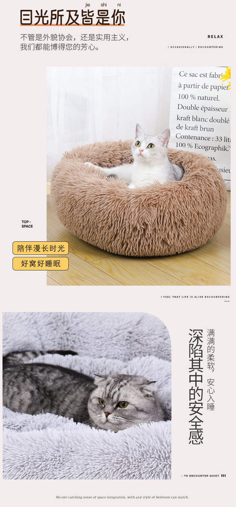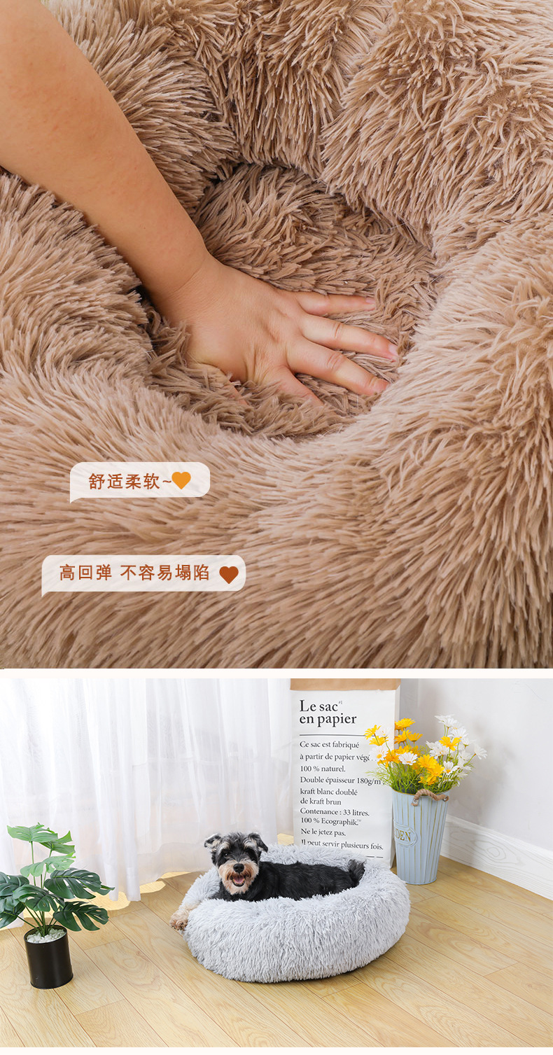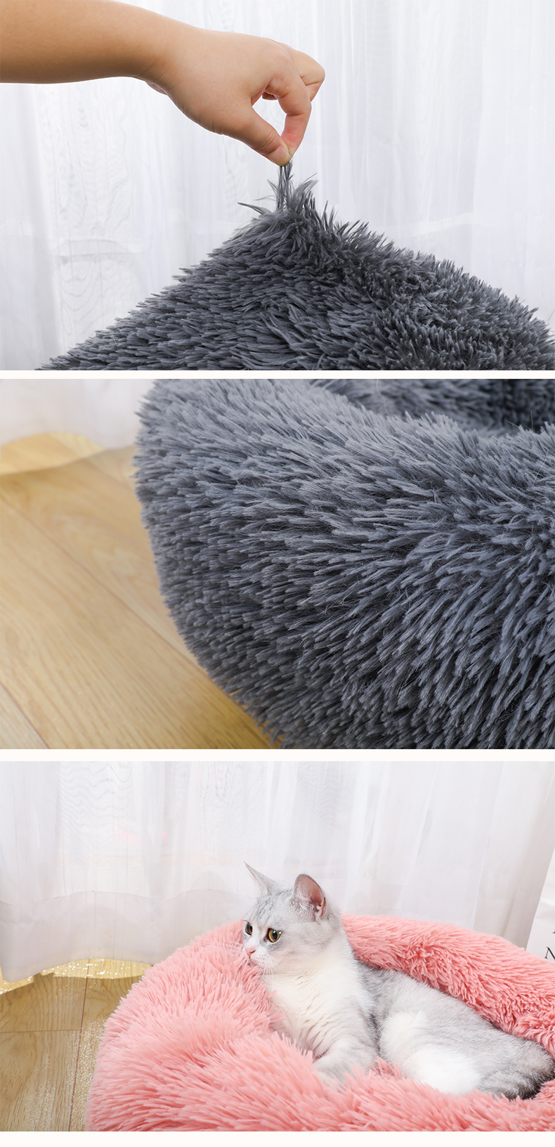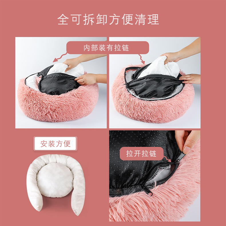 Almohadilla para mascotas mejorada, caseta para perros extraíble y lavable, forro redondo de felpa, camada para mascotas desmontable y limpiable, camada para gatos con cremallera