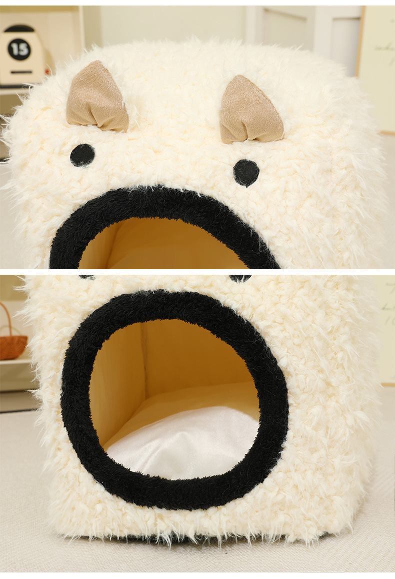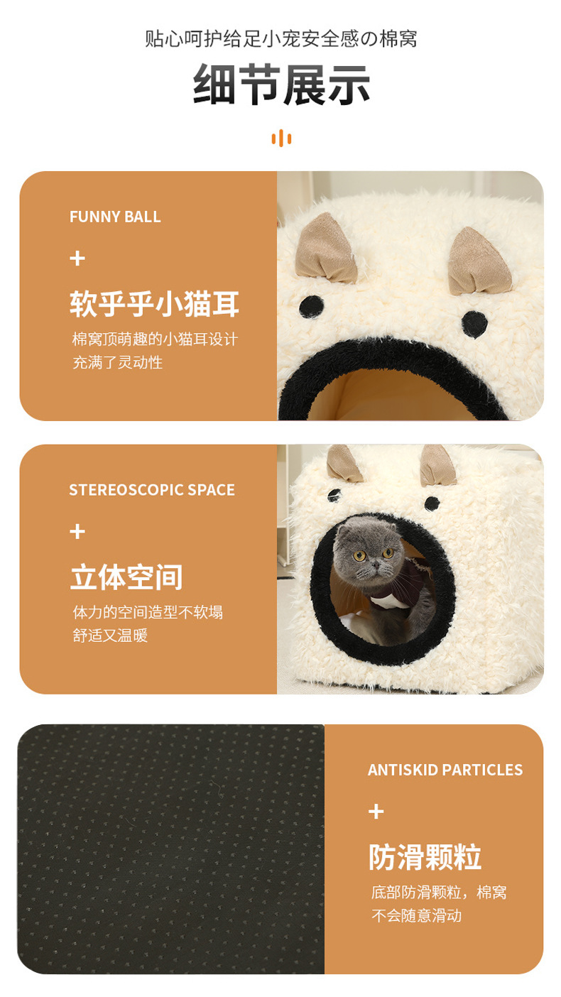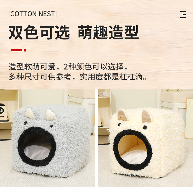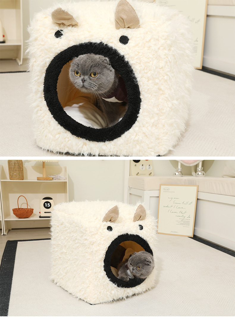 Peluche para mascotas, orejas de gato, nido cuadrado tridimensional, cojín desmontable, cama para mascotas, perrera cálida, nido para gatos semicerrado