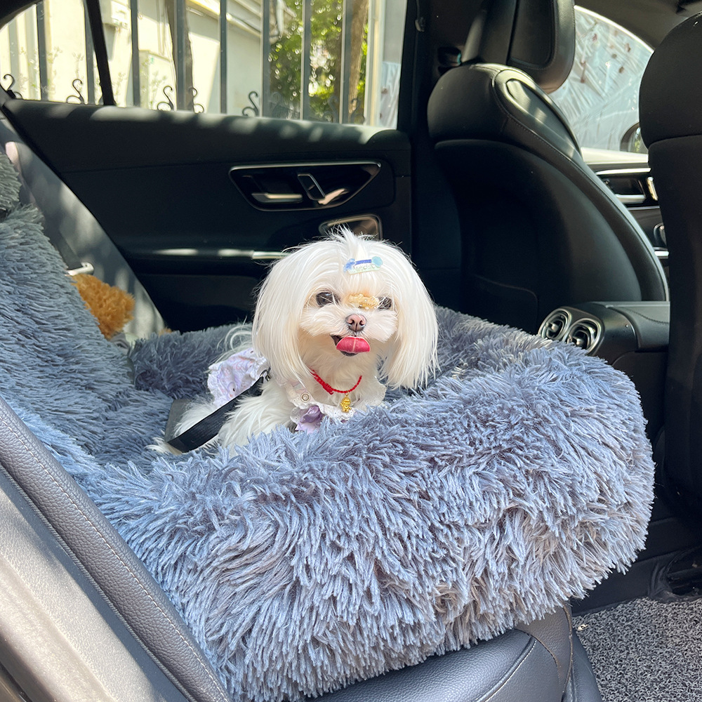 Cojín para mascotas de coche de felpa de invierno, antideslizante, grueso, gato y perro, cojín para silla de coche, color sólido, cómodo cojín para perrera