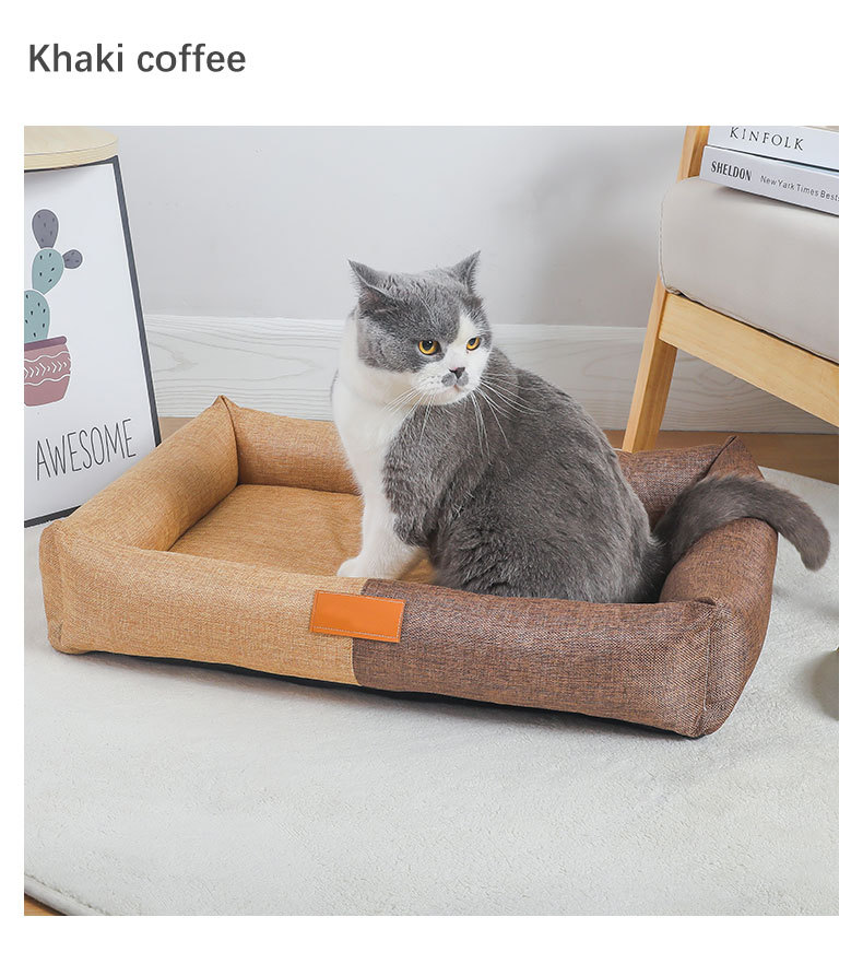 Cuatro Estaciones universal gato nido algodón Lino cuadrado perrera japonés y coreano cremallera desmontable gato dormir nido perro mascota mat