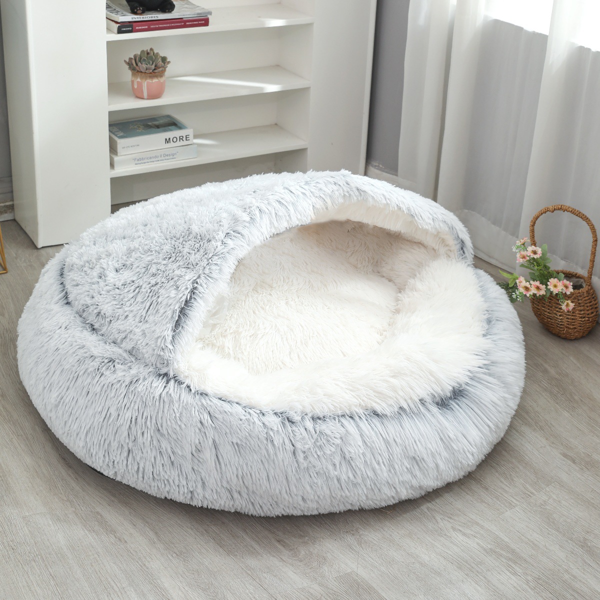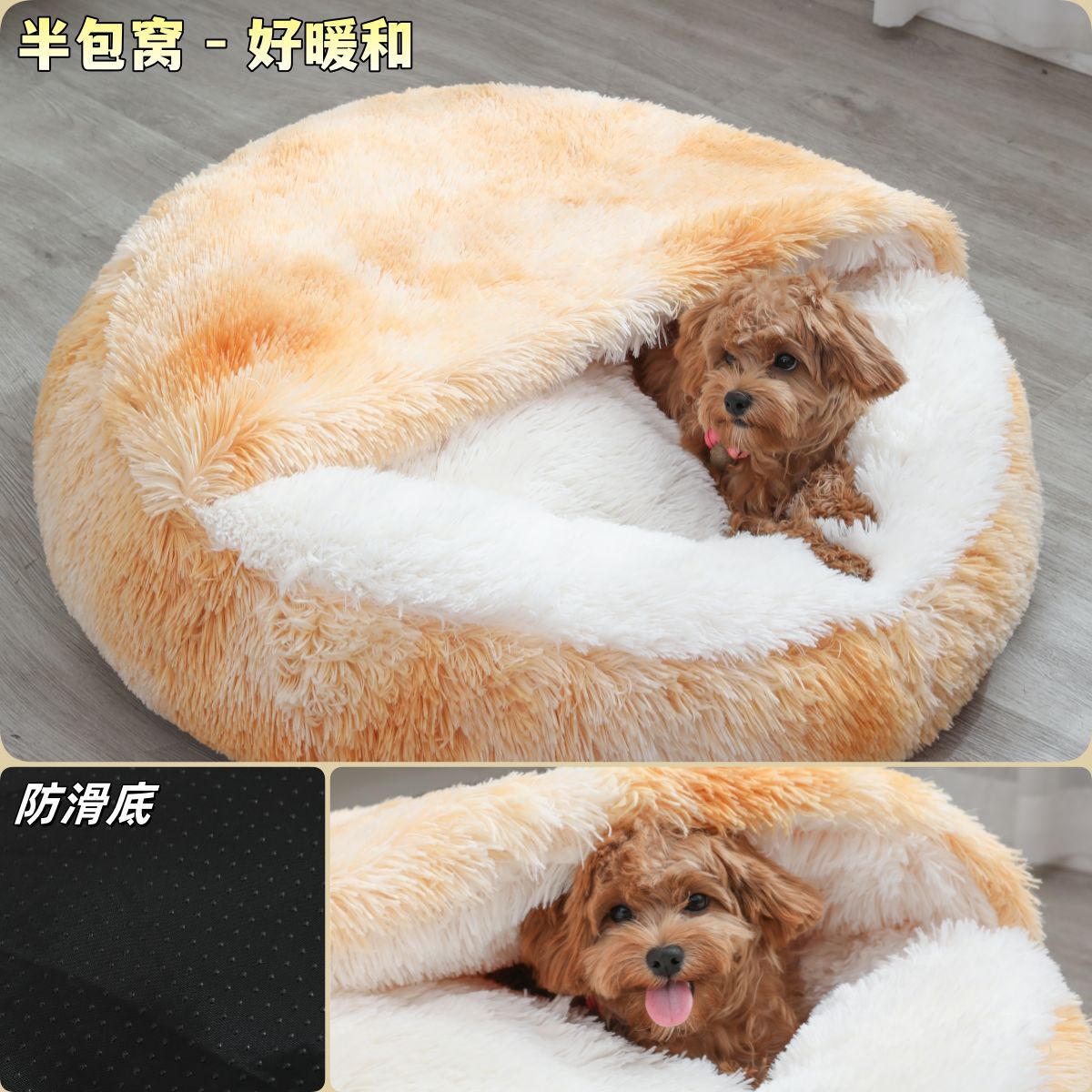 Nido para gatos Casa cálida de invierno semicerrada Villa para gatos Nido cubierto de felpa Nido semi-cubierto de doble uso para cuatro estaciones