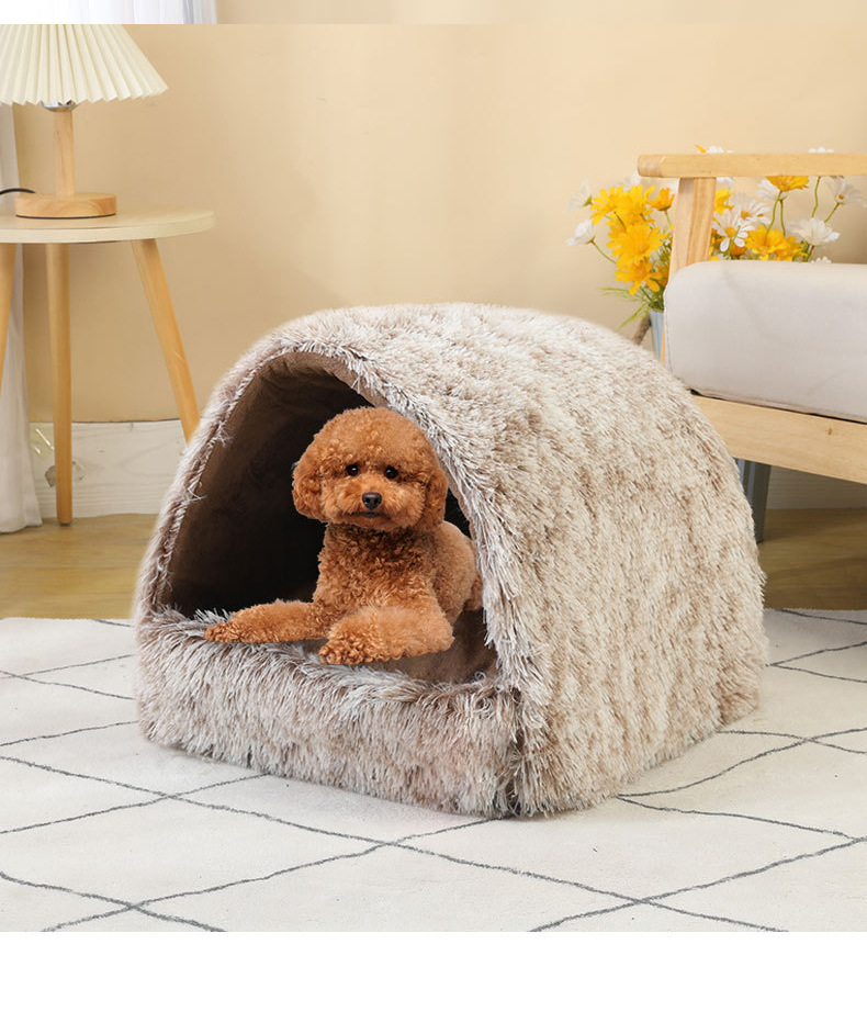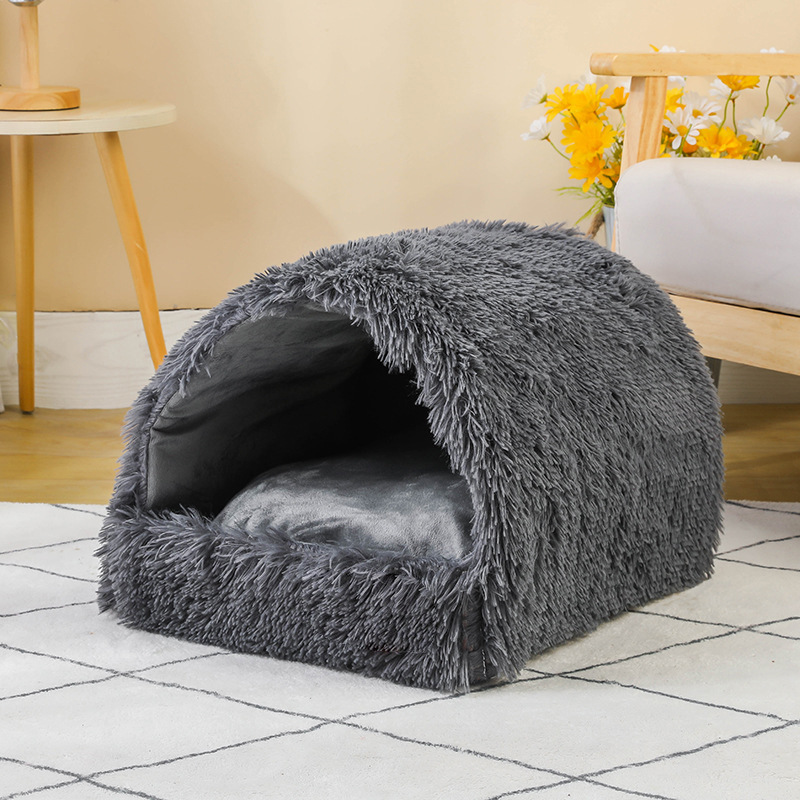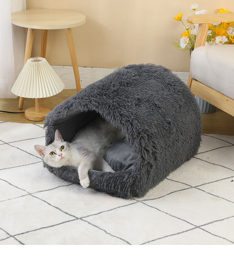 Fábrica Four Seasons Universal Pet nido semicerrado gato nido forrado de lana caliente Pet House perrera comprimido gato cama