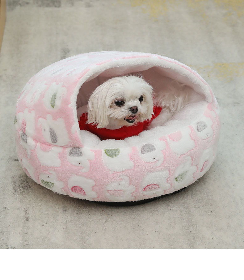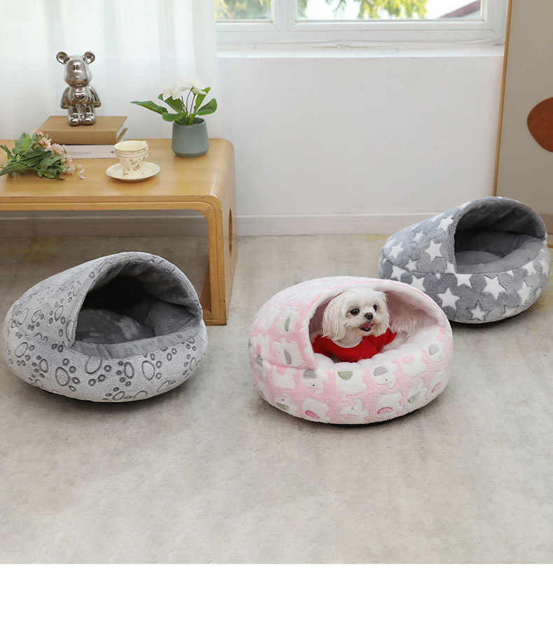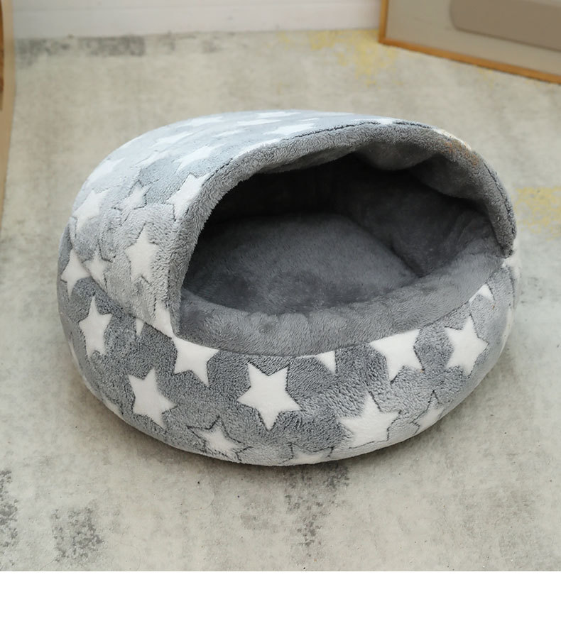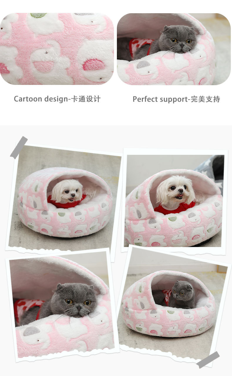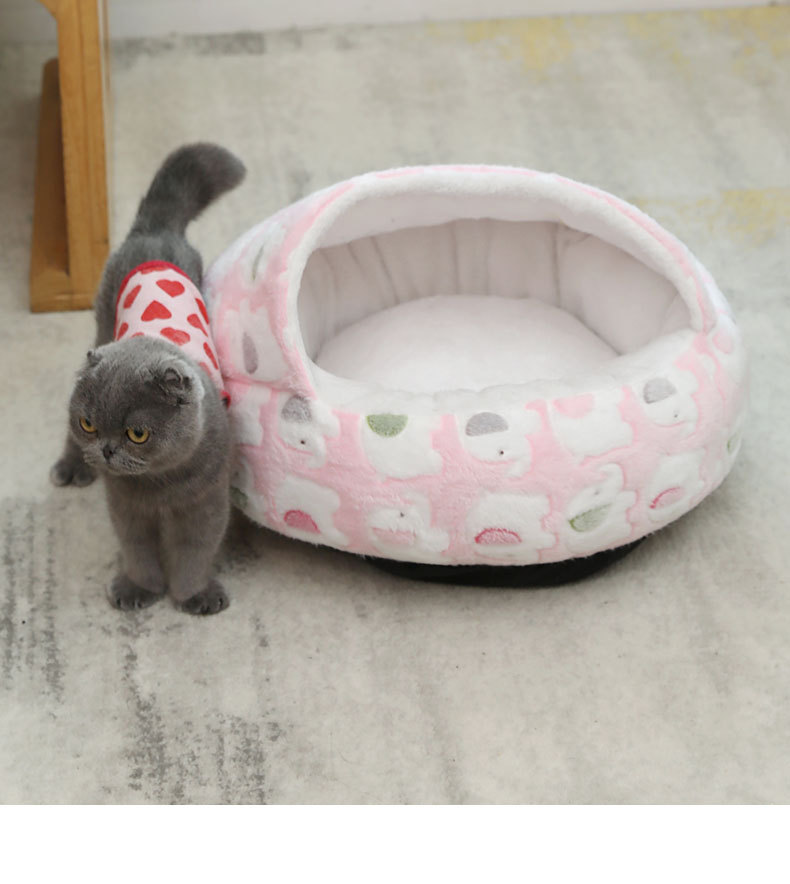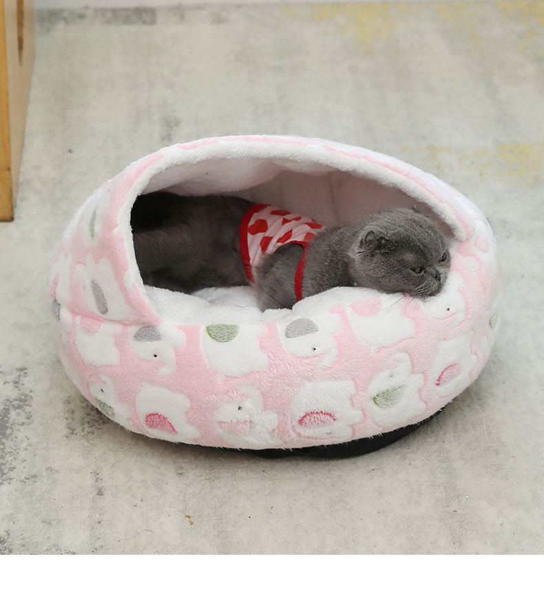 Medio paquete gato nido de dibujos animados flor Shell nido gato dormir cubierta inferior antideslizante cálido dormir mascota nido mat