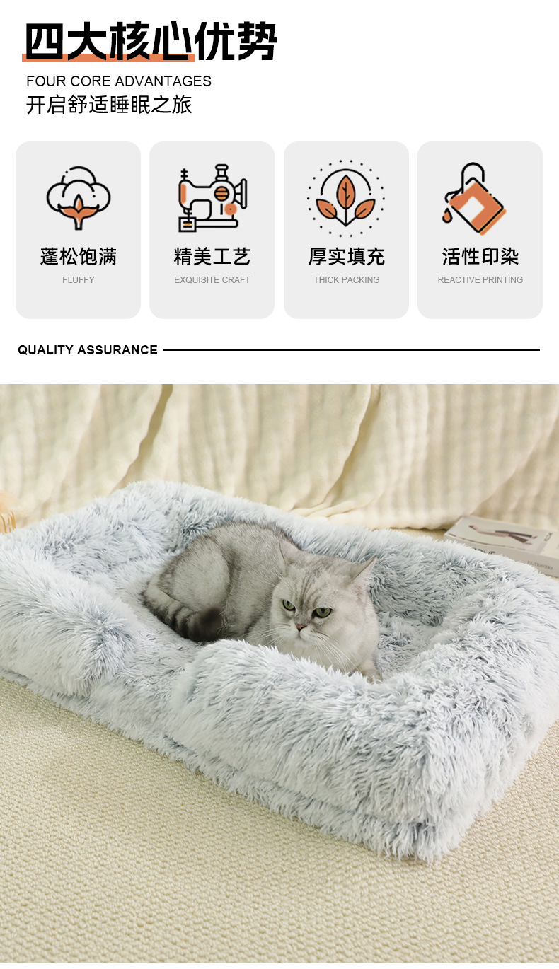 Fábrica de peluche de invierno para mascotas peluche para gatos nido para perros cuadrado cojín para mascotas cama para gatos cama para perros suministros para mascotas