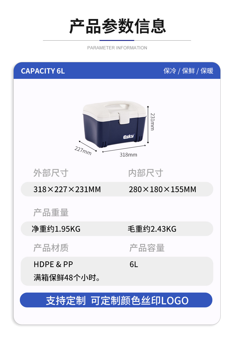 Esky al aire libre conveniente 6l incubadora de alimentos al por mayor de transporte de mariscos pu caja refrigerada cadena de frío caja de entrega de picnic