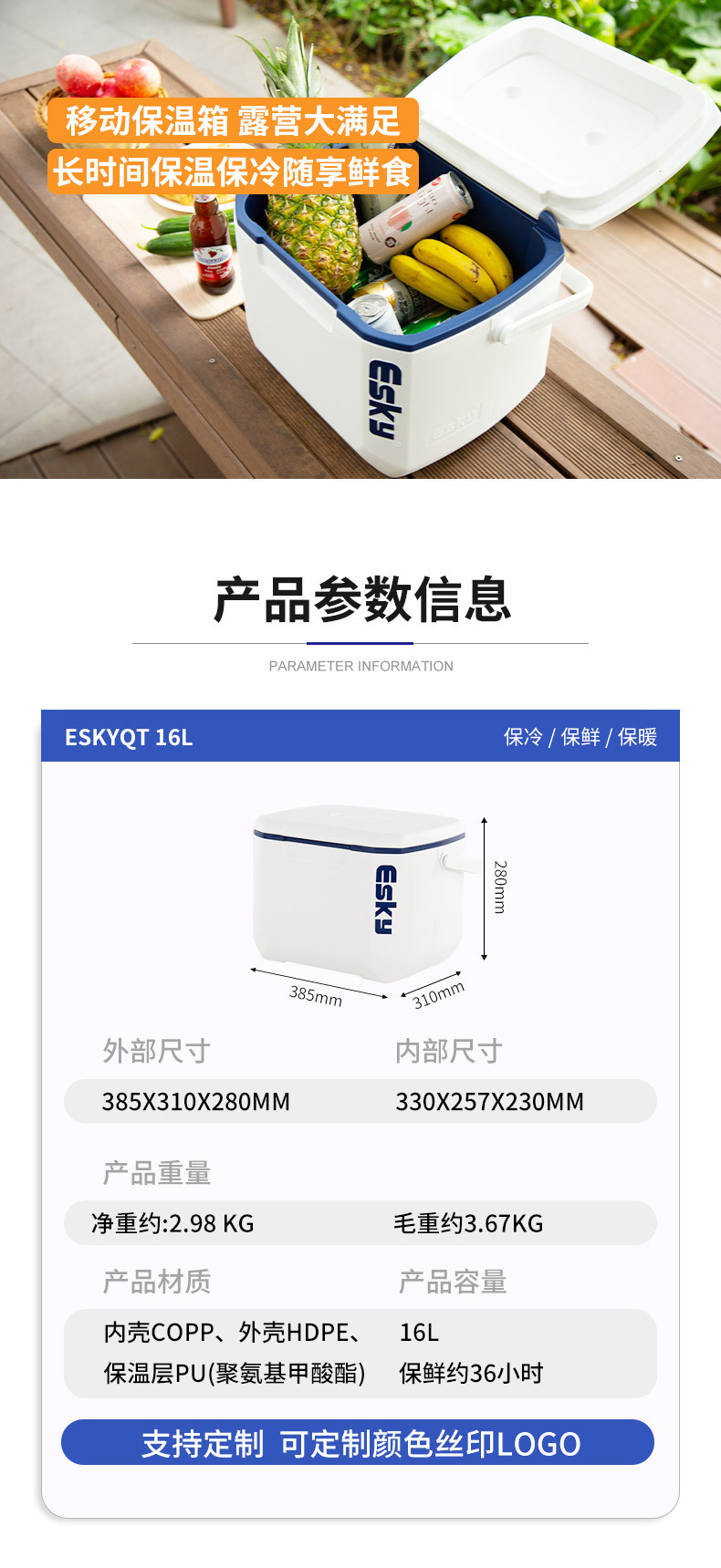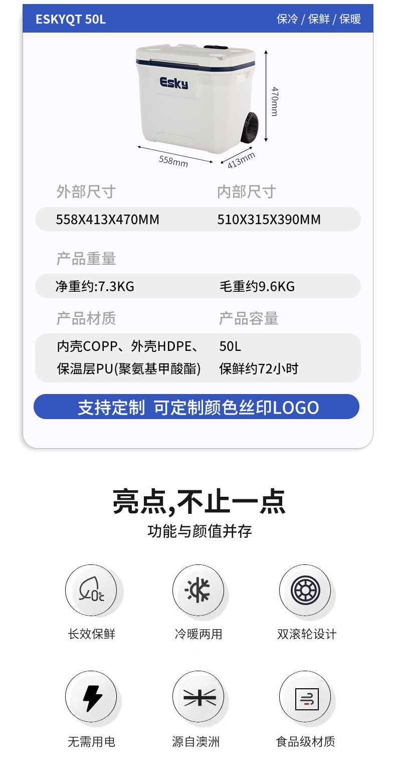 ESKY50QT pesca al aire libre caja de mantenimiento fresco incubadora regalo caja refrigerada comercial caja refrigerada portátil de mantenimiento en frío