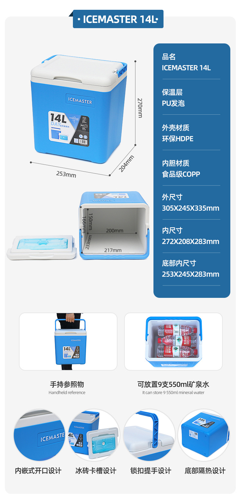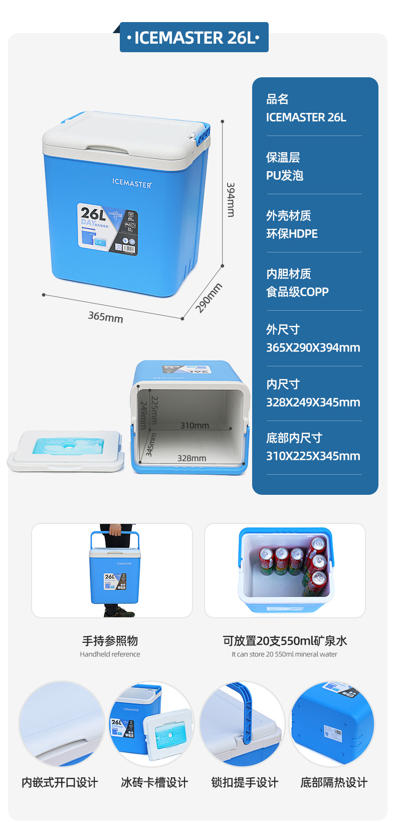Caja de aislamiento para exteriores de 45L, caja de almacenamiento en frío con ruedas de tracción, caja de almacenamiento en frío y fresco de alimentos de gran capacidad portátil