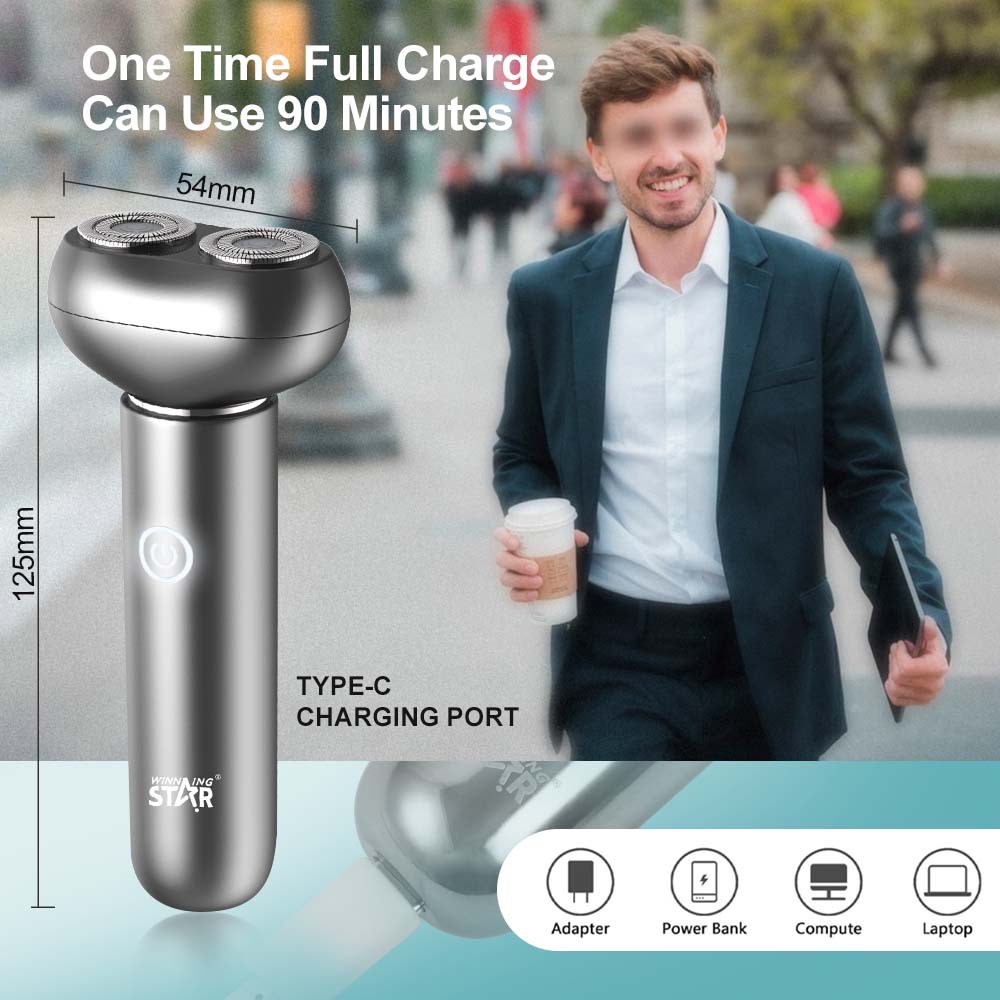 WinningStar Cross-border Type-C para hombre recargable de larga duración para el hogar portátil de doble cabezal eléctrico afeitadora