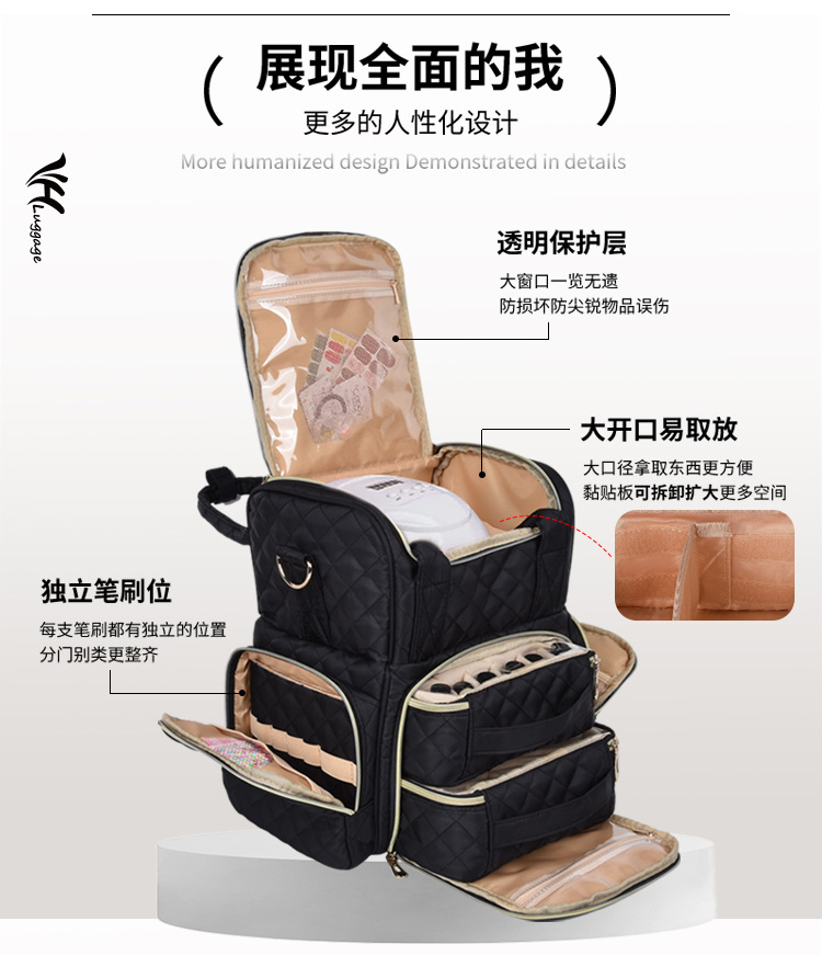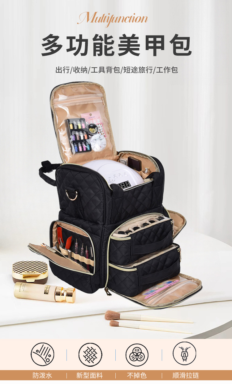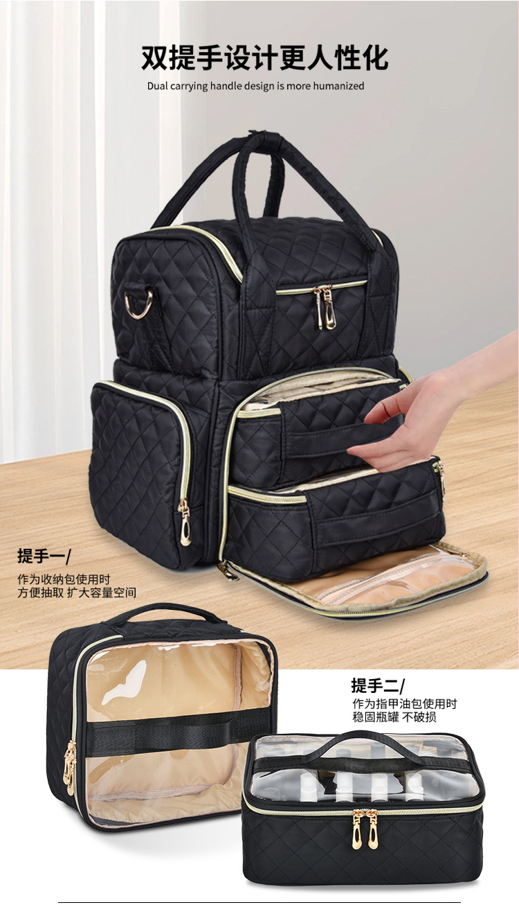 Nuevo bolso de cosméticos de un solo hombro de gran capacidad transfronterizo bolso de almacenamiento de maquillaje de uñas de doble capa bolso de uñas portátil 2025 venta caliente