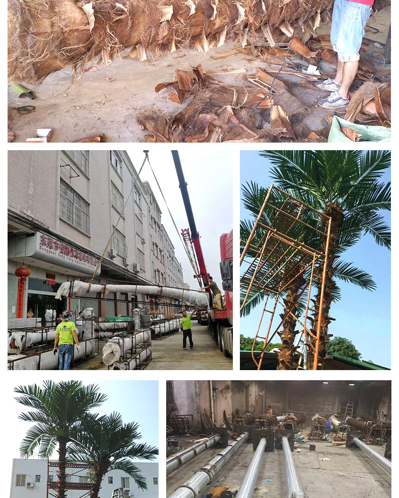 Palmeras de simulación de interiores y exteriores Palmeras de girasol de ancianos Simulación de paisaje Parque de plantas Cinturón verde Decoración Palmeras falsas