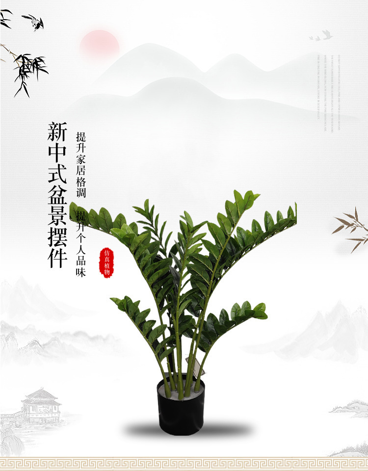 Simulación de hojas de dinero, plantas verdes, plantas en macetas, simulaciones de hojas de dinero falsas, adornos de plástico artificial, plantas verdes