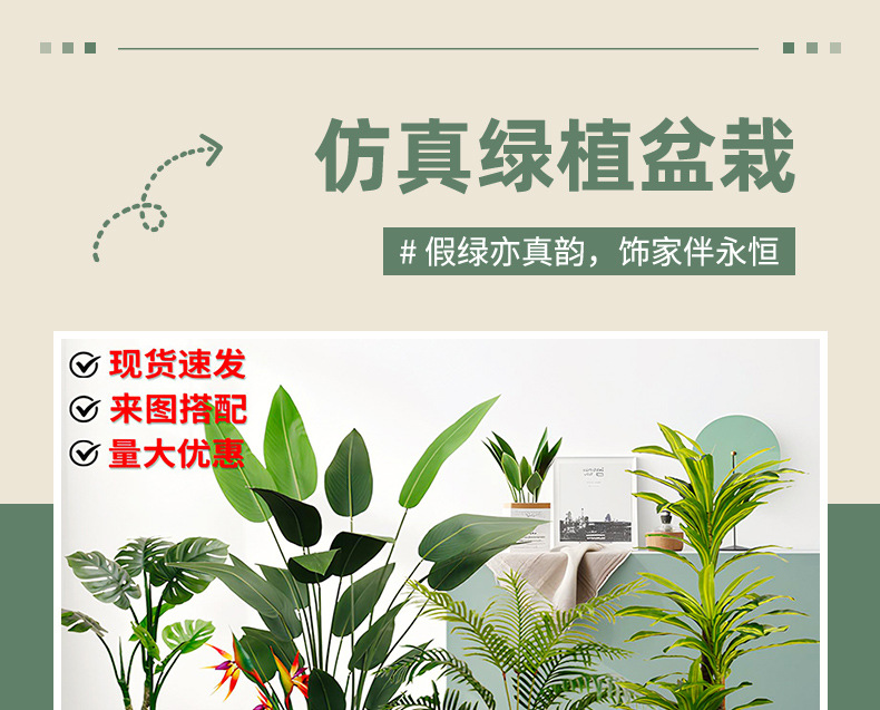 Gran planta de simulación nórdica, sala de estar de plátano para viajeros, plantas verdes falsas, plantas en macetas, ventanas para el hogar, decoración de paisajes, plantas verdes de simulación