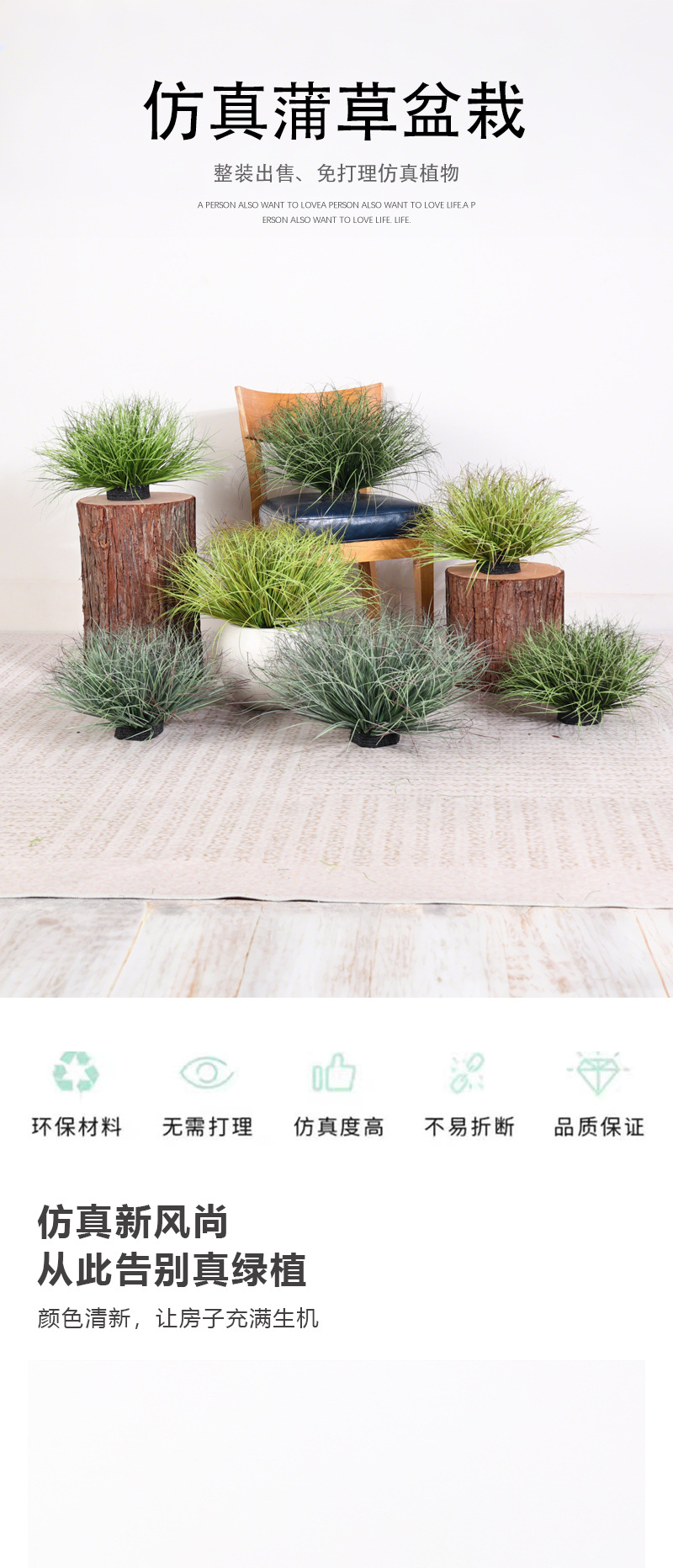 Simulación de espadaña hierba de junco falsa decoración del hogar interior accesorios de fotografía hierba falsa pajar paisaje de plantación verde falsa