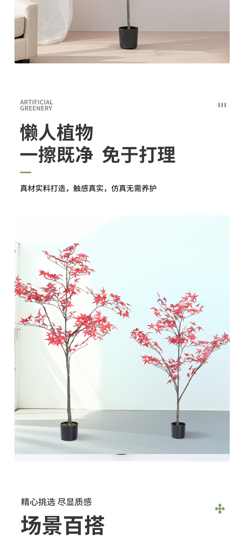 Simulación de arce rojo árbol de hoja de arce árbol falso en macetas gran jardín interior y exterior paisajismo planta falsa decoración de piso