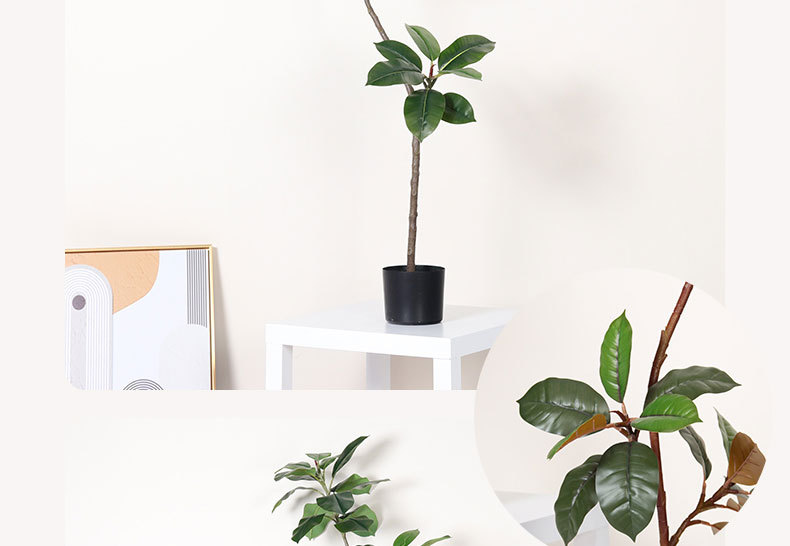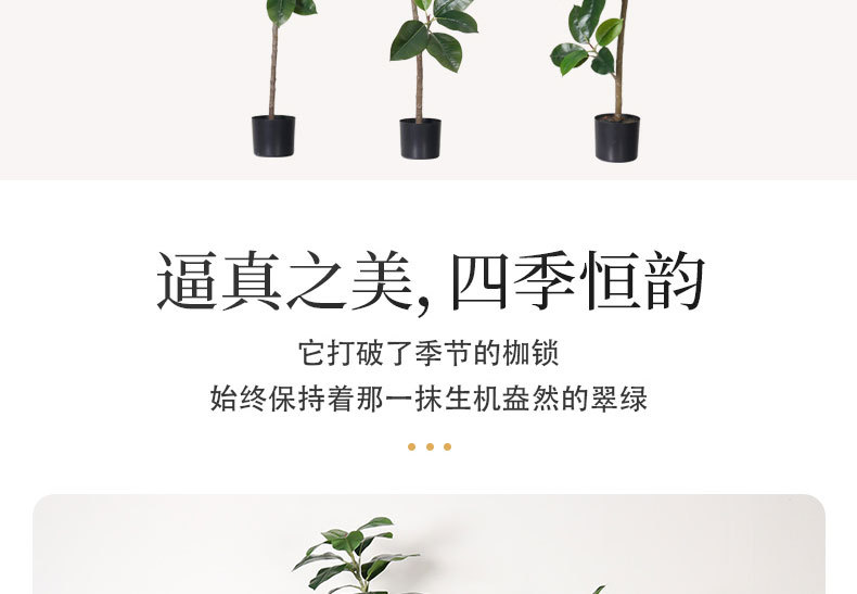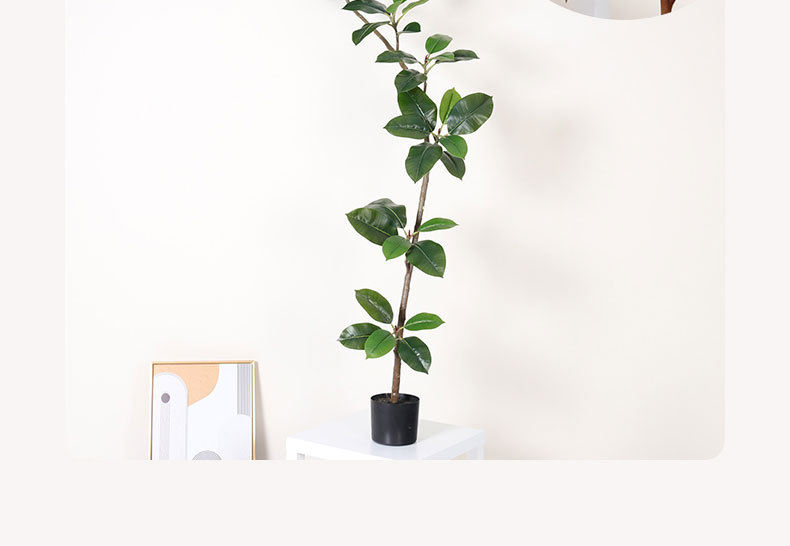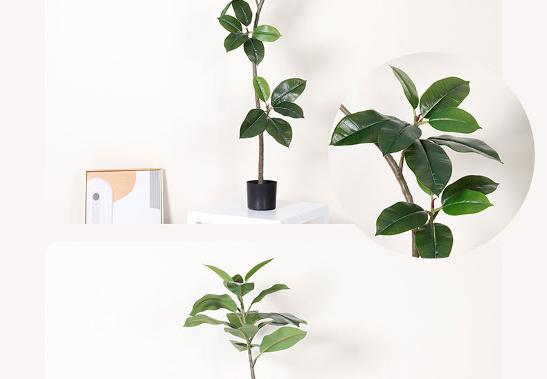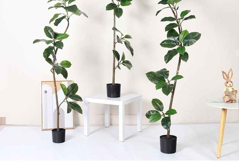 Simulación de plantas verdes, árboles de caucho de diamante negro, plantas en macetas, adornos de sala de estar de lujo ligero de alta gama, plantas falsas de banyan de hoja verde a gran escala