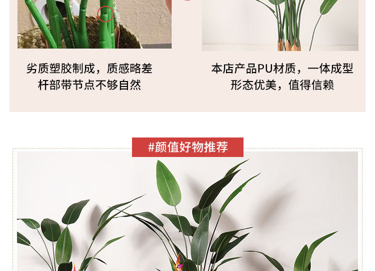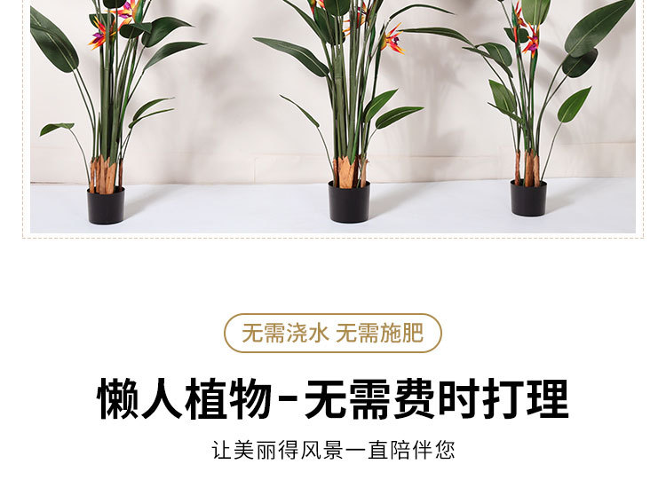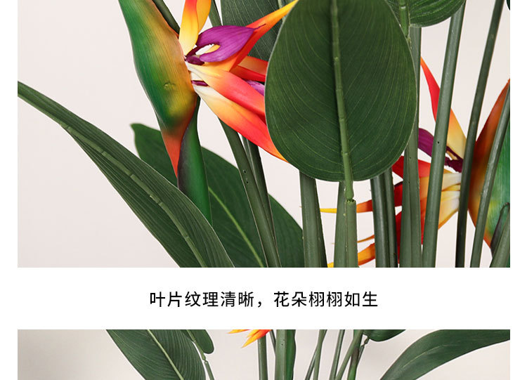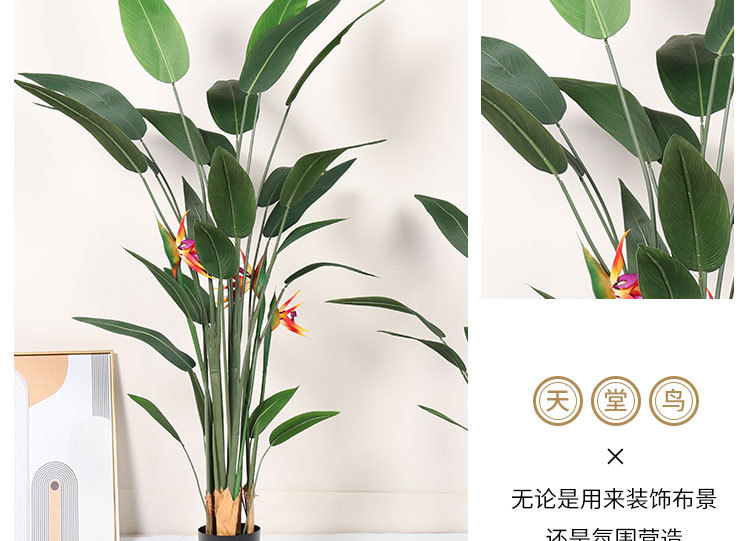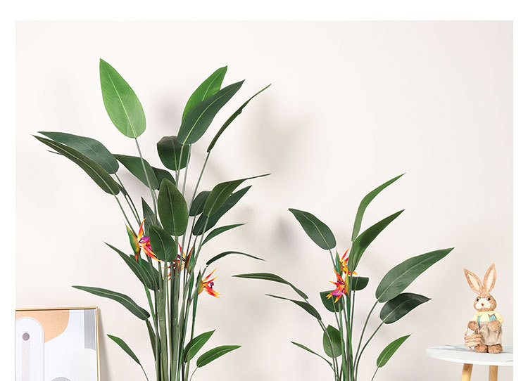 Planta verde de simulación a gran escala, pájaro del paraíso con flores, árbol falso, planta en maceta, sala de estar interior, decoración, paisajismo de plantas biónicas