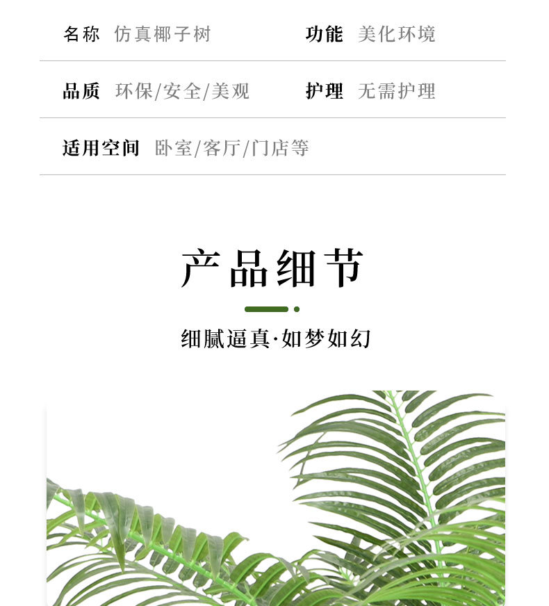 | Colores | Árbol de coco 2 m-6 hojas,Árbol de coco 2,4 m-12 hojas,Árbol de coco 2,8 m-12 hojas |