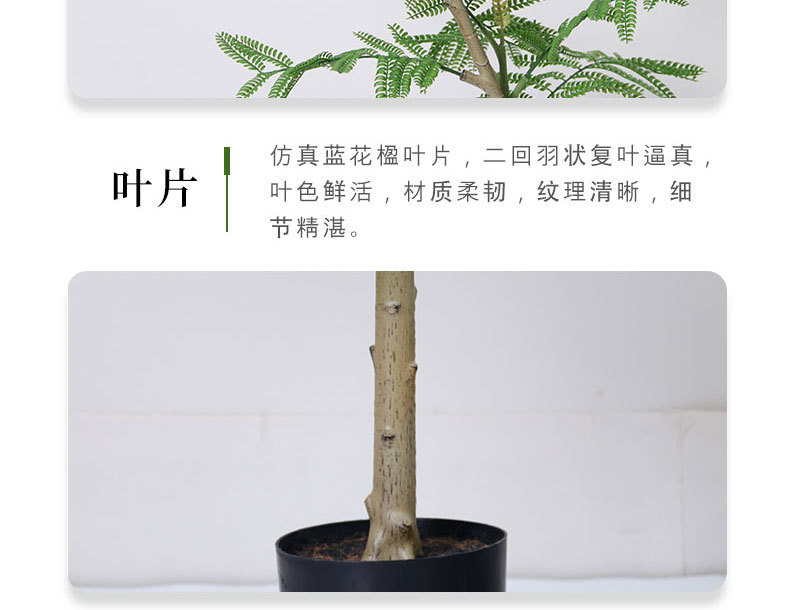 Jacarandá de simulación de alta gama, plantas verdes falsas, plantas en macetas, grandes interiores, salas de estar, decoraciones de decoración de piso, paisajismo de plantas biónicas