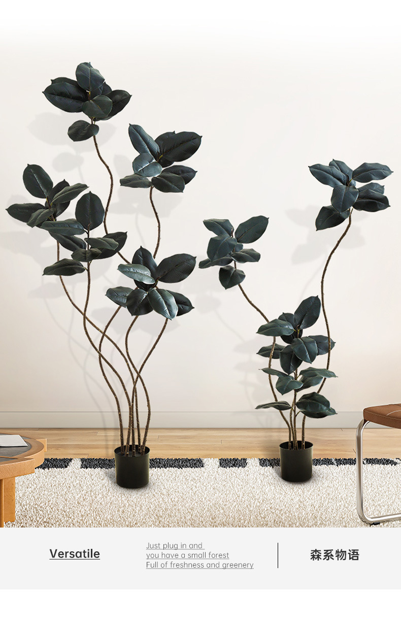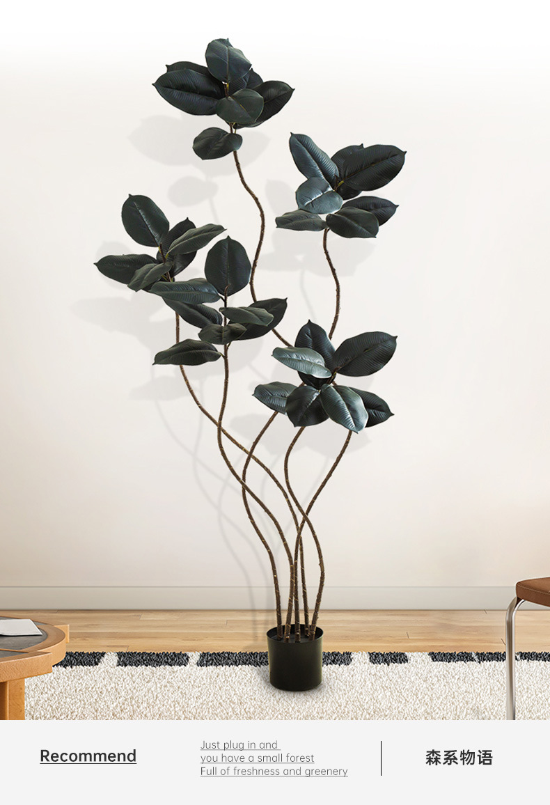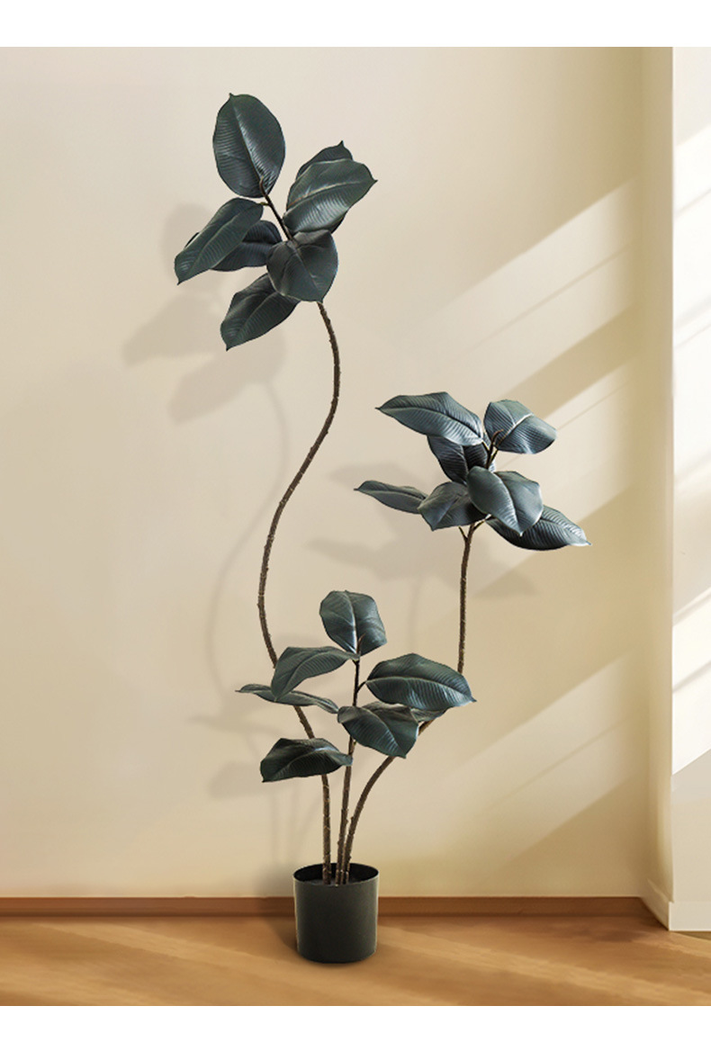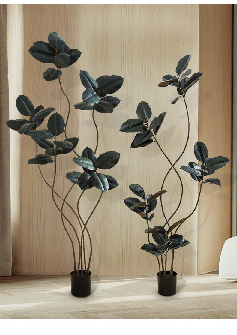 Simulación de plantas verdes, árboles de caucho de diamante negro, decoración de sala de estar de lujo ligero de alta gama, grandes árboles falsos de piso a techo, plantas falsas