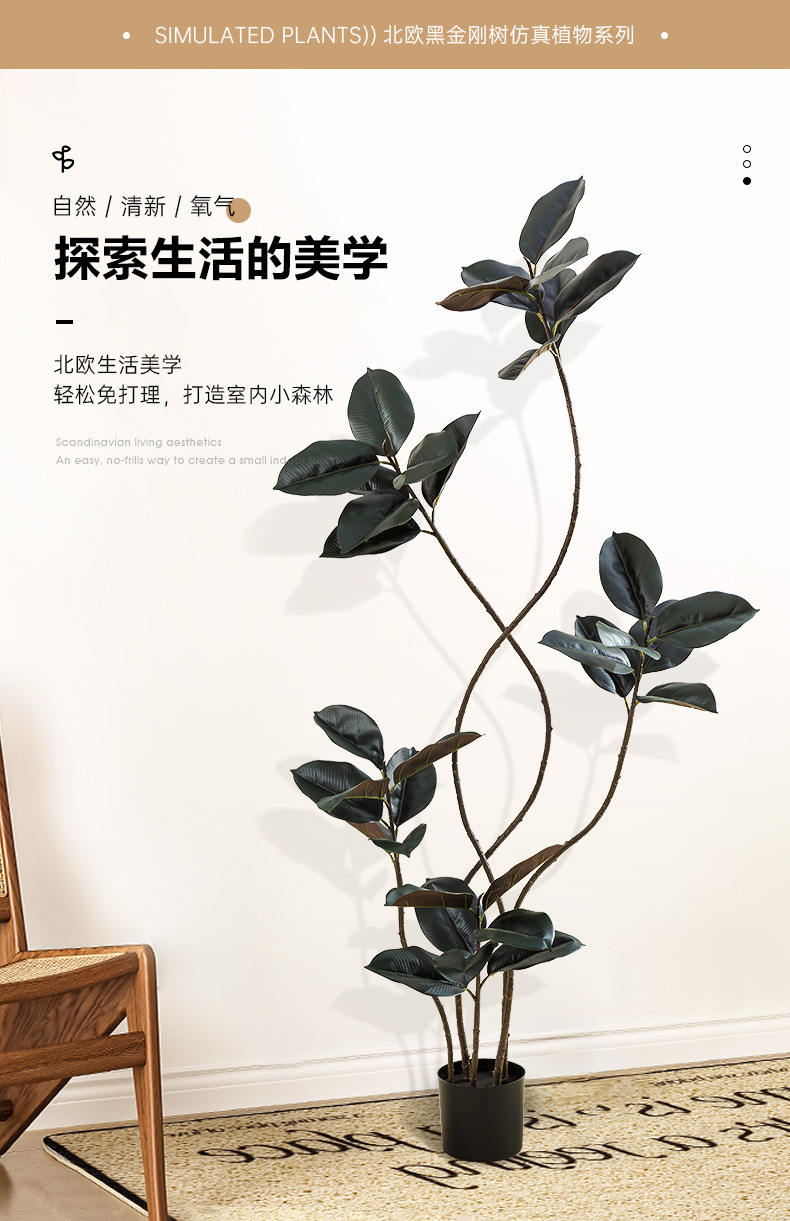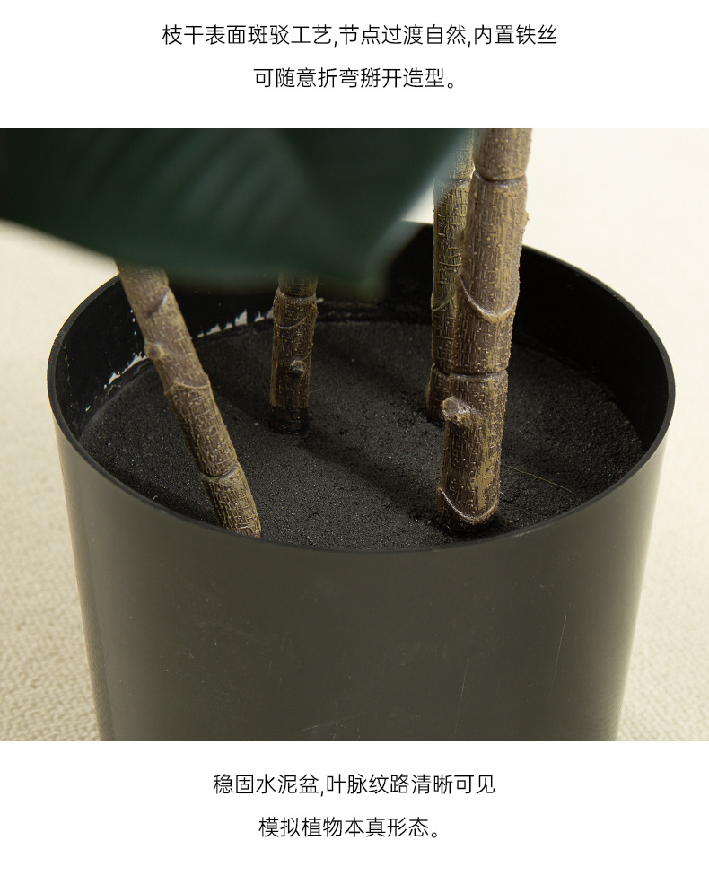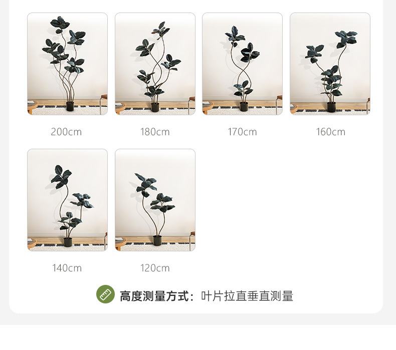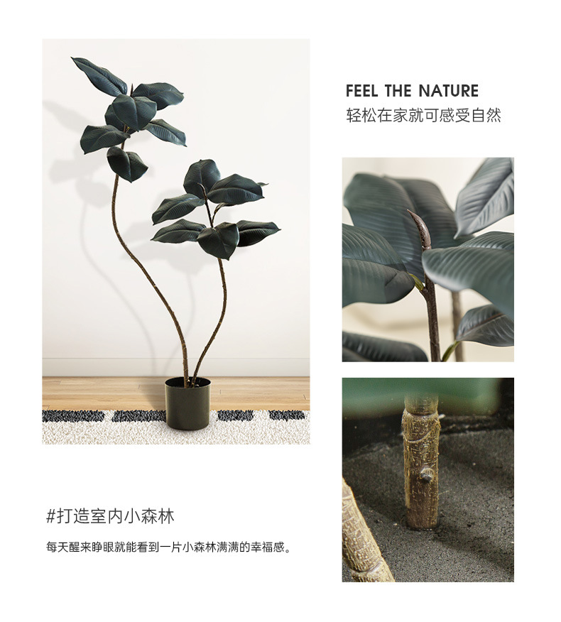 Simulación de plantas verdes, árboles de caucho de diamante negro, decoración de sala de estar de lujo ligero de alta gama, grandes árboles falsos de piso a techo, plantas falsas